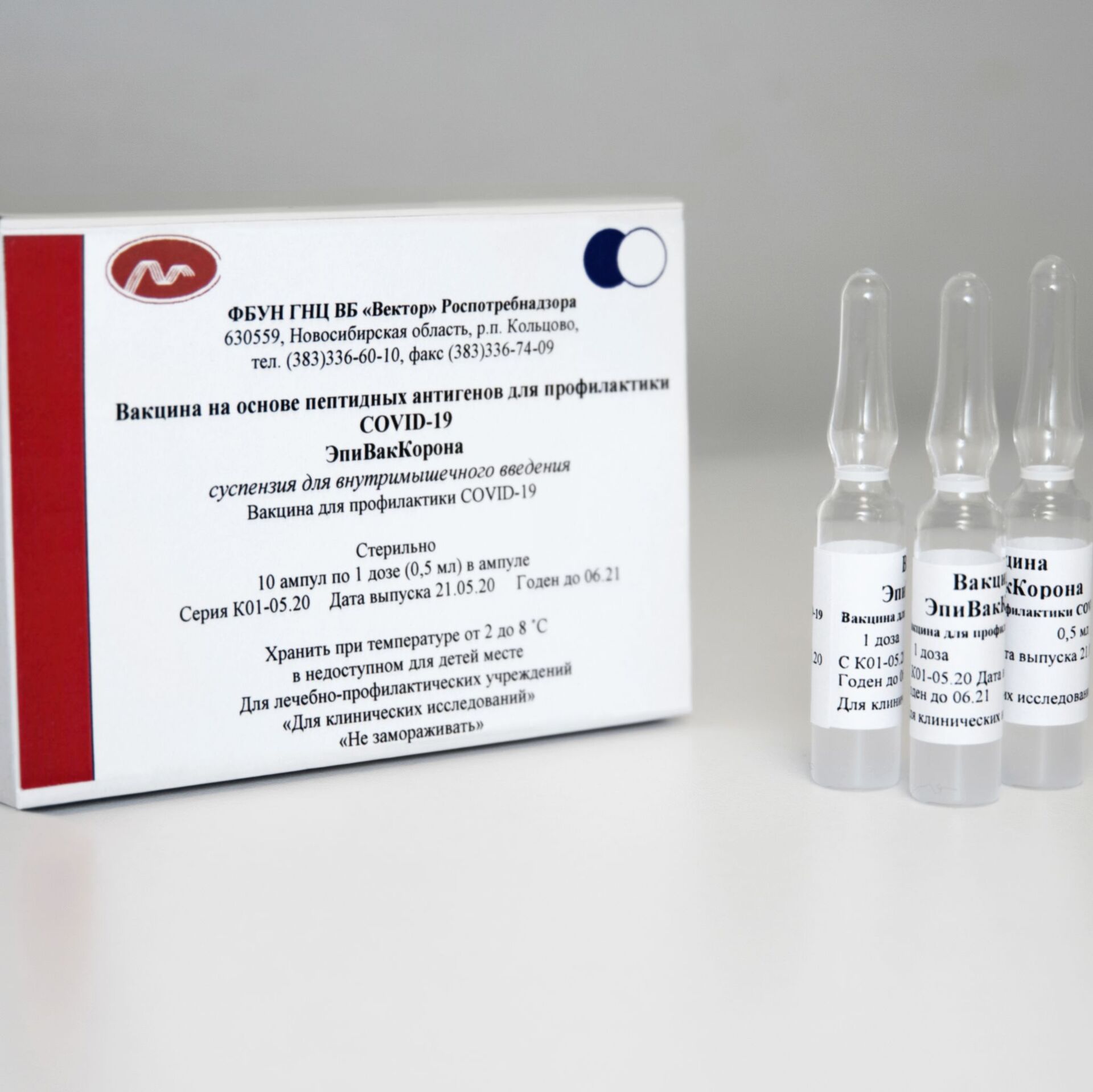 Le 27 juillet, le Centre national russe de recherche en virologie et biotechnologie Vektor a lancé les essais cliniques de l’EpiVacCorona. Au moins 300 volontaires âgés de 18 à 60 ans, dont 60 employés du centre, y ont participé.