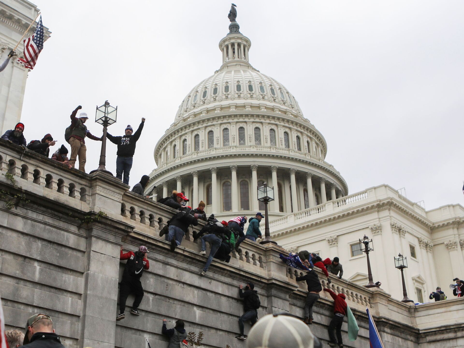 Des images de la manifestation survenue à Washington le 6 janvier lors de laquelle des protestataires pro-Trump ont fait irruption dans le Capitole poussant le Congrès à suspendre la procédure de certification des résultats de la présidentiellehttps://t.co/gqCWQL4JHJ pic.twitter.com/3kuQBFEPmG