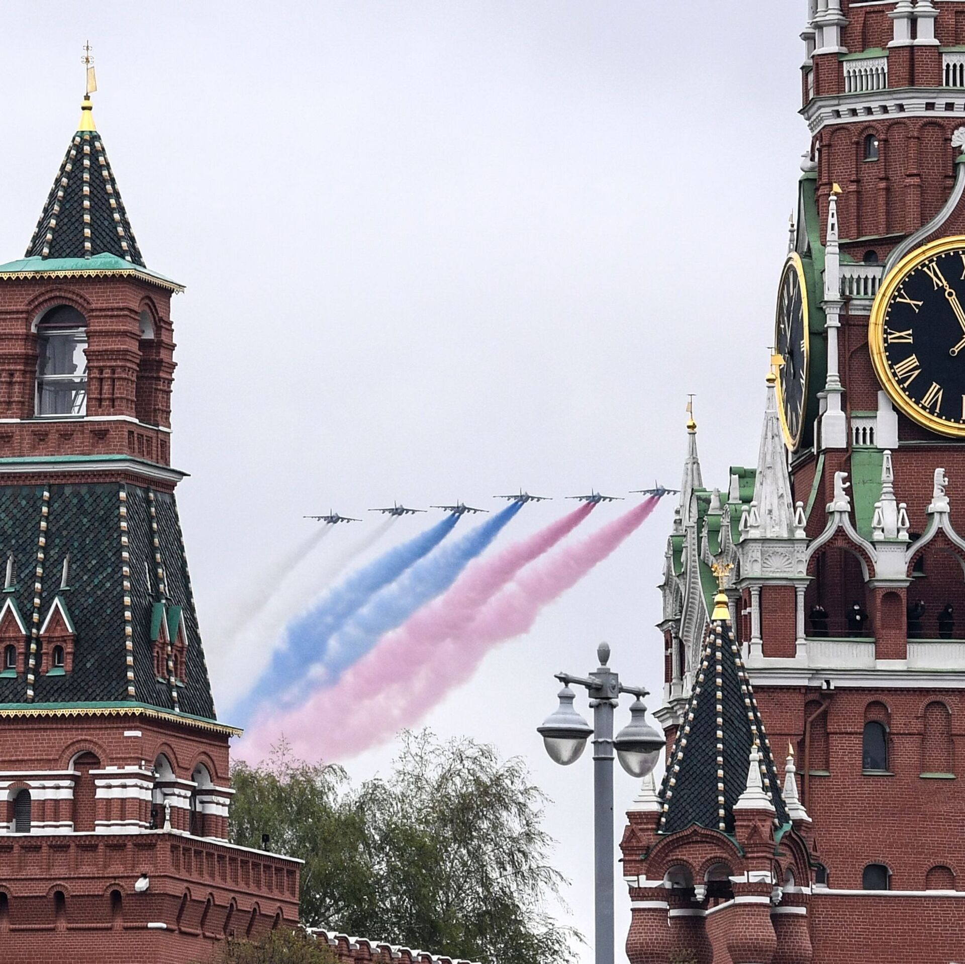 #SputnikVidéo | Malgré le déluge de la veille et un temps nuageux ce dimanche, le volet aérien du défilé militaire a eu lieu à Moscou. 76 avions et hélicoptères ont survolé le Kremlin.https://t.co/apo0WvXymP pic.twitter.com/oQS9lTETiw