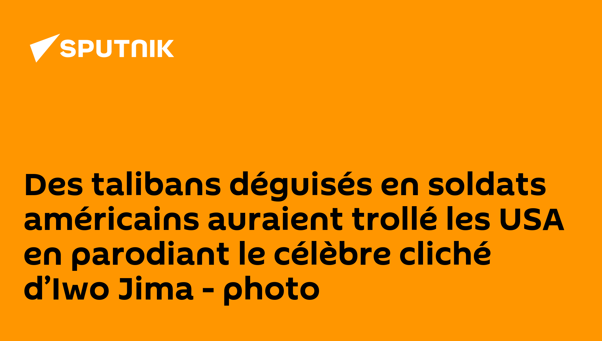 Quelques jours après leur entrée dans Kaboul, l’heure est à la propagande et à la communication pour les talibans*. Alors qu’ils tentent de rassurer la communauté internationale sur le respect des droits humains, les nouveaux maîtres de l’Afghanistan ne s’interdisent pas non plus d’envoyer quelques piques à l’armée américaine.Avec un humour que chacun appréciera, les talibans* ont ainsi parodié la célèbre photo du drapeau américain planté à Iwo Jima, rapporte le Marine Corps Times.L’image a été partagée par le Bataillon Badri 313, considéré par certains comme un commando d’élite des talibans*. Elle montre quatre personnes, vêtues de treillis et parées d’un équipement tactique lourd, hisser le drapeau blanc des talibans*.Leur posture rappelle la fameuse photo de Joe Rosenthal, prise en 1945 au sortir de la bataille d'Iwo Jima. Le photographe avait alors immortalisé cinq Marines en train de planter un drapeau américain sur le mont Suribachi. Un cliché devenu un symbole aux États-Unis, où il a même reçu le prix Pulitzer. Ironie macabre: le colonel qui avait envoyé le détachement planter ce drapeau est décédé le 2 août dernier.La parodie n’a pas manqué de déclencher une vague d’indignation sur les réseaux sociaux, beaucoup y voyant une forme d’humiliation. Côté républicain, certains ont rejeté le blâme sur l’administration Biden. Sebastian Gorka, ancien assistant adjoint de Donald Trump, a ainsi déclaré que cette image «souillait le sacrifice» des soldats tombés à Iwo Jima, ce qu’«aucun ennemi» n’avait osé faire jusqu’ici. Le responsable a accusé Joe Biden d’avoir «trahi tous les Américains, vivants comme morts».Meghan McCain, fille de l’ancien candidat à la présidence John McCain, a pour sa part déploré que les États-Unis soient devenus «la risée du monde».Prises de guerreCette parodie met également en lumière les prises de guerre réalisées par les talibans* après le retrait américain et le délitement des forces gouvernementales. Les vainqueurs ont en effet mis la main sur un arsenal militaire conséquent, allant des fusils d’assaut aux hélicoptères, souvent de facture américaine.D’autres images de talibans* vêtus à la manière de soldats américains ont d’ailleurs fleuri sur les réseaux sociaux.Le groupe terroriste aurait désormais en sa possession plus de 2.000 véhicules blindés, dont des célèbres Humvees américains, ainsi qu’une quarantaine d’avions et hélicoptères, a confié à Reuters un officiel se basant sur le renseignement américain.Les craintes concernent également les armes légères, alors que plusieurs talibans* sont apparus dans les rues de Kaboul armés de fusils M16. Depuis 2003, les États-Unis ont livré plus de 600.000 armes légères aux forces afghanes, souligne Reuters.*Organisation terroriste interdite en Russie