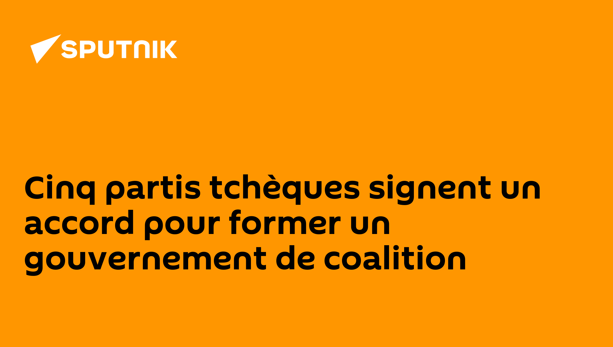 15:34 08.11.2021 (Mis à jour: 17:56 10.01.2022) Cinq partis politiques tchèques ont signé lundi un accord pour former un gouvernement de coalition de centre-droit après leur victoire inattendue aux élections législatives le mois dernier, une étape importante vers le départ du Premier ministre sortant Andrej Babis.