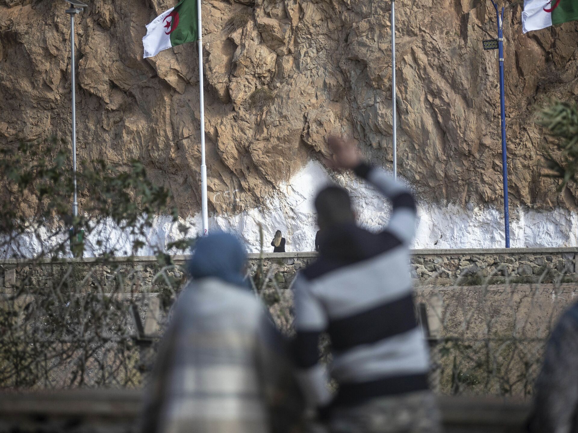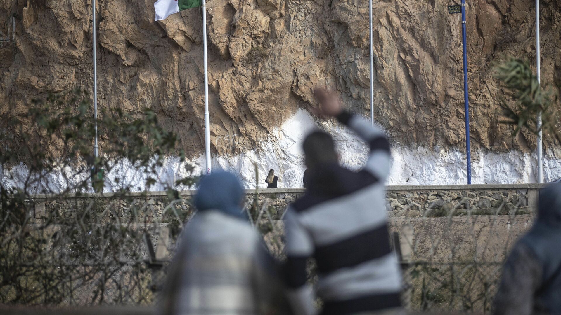 Sur la photo: des membres de la même famille se saluent depuis les côtés opposés de la frontière maroco-algérienne fermée.
