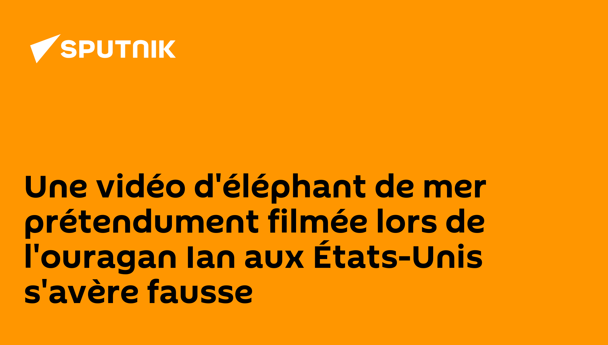 16:29 29.09.2022 (Mis à jour: 16:19 30.09.2022) Alors que l'ouragan Ian ravage actuellement des villes aux États-Unis, de nombreuses vidéos apparaissent ces jours-ci pour en montrer les conséquences. Cette vidéo, comme beaucoup d'autres, avec un éléphant de mer en pleine ville est vite devenue virale, sauf que... c'est une séquence filmée au Chili.