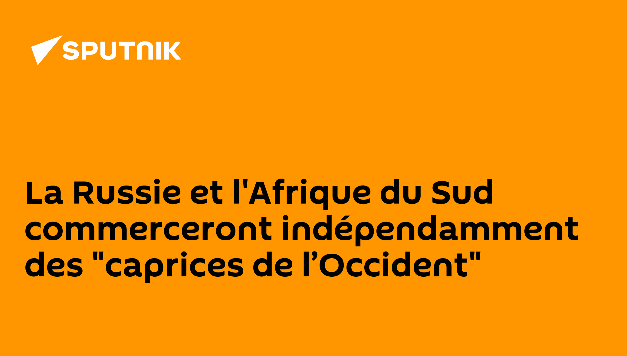 La Russie et l'Afrique du Sud commerceront indépendamment des "caprices de l’Occident"