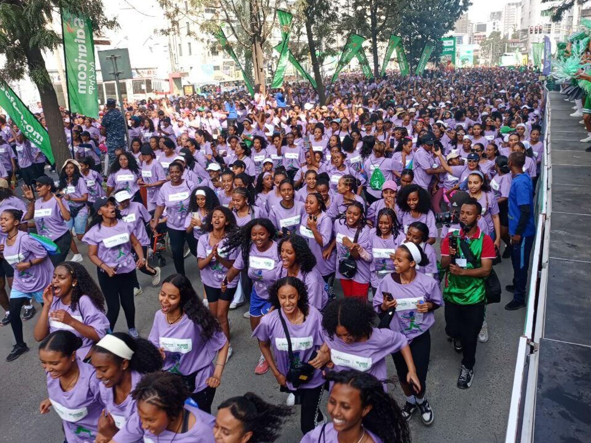 En Éthiopie, Women's First, un marathon de 5 km, se déroule dans le district de Bole à Addis-Abeba, attirant plus de 16.000 participantes et près de 150 athlètes compétitives.