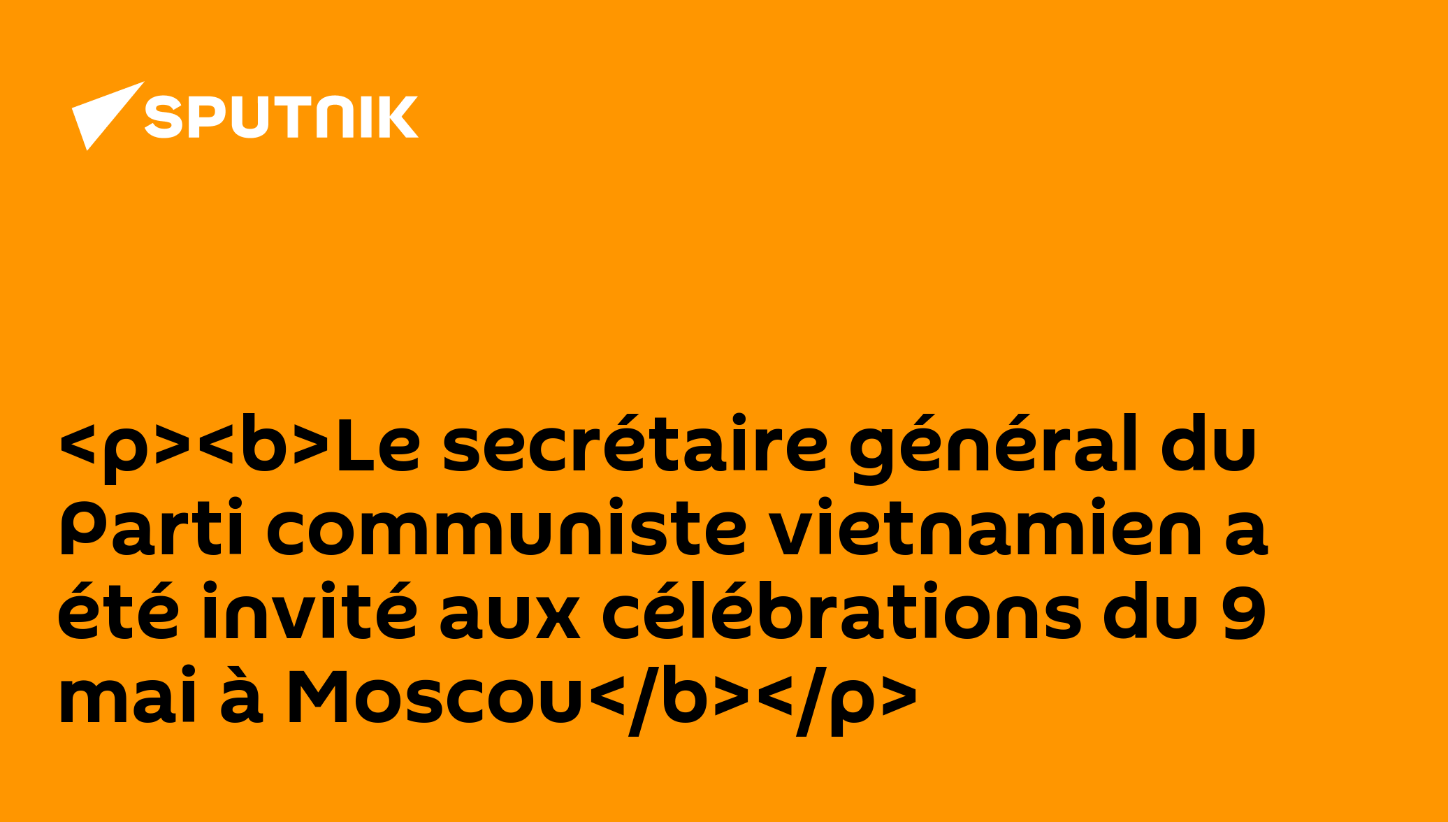 Le secrétaire général du Parti communiste vietnamien a été invité aux célébrations du 9 mai à MoscouAbonnez-vous @sputnik_afrique Sputnik Afrique | X