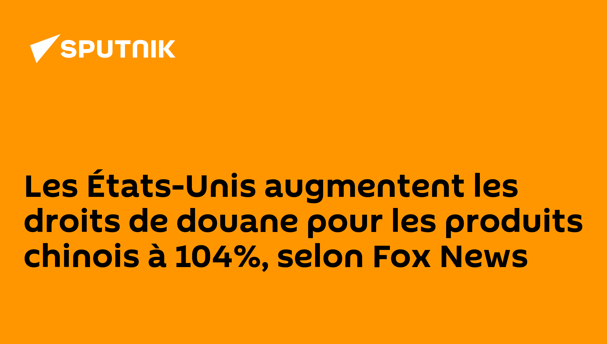 Les États-Unis augmentent les droits de douane pour les produits chinois à 104%, selon Fox News"La porte-parole de la Maison-Blanche a déclaré que les droits de douane supplémentaires de 104% sont entrés en vigueur, la Chine n'ayant pas levé ses droits de douane de rétorsion. Ces taxes supplémentaires seront prélevées à partir du 9 avril", a écrit un journaliste de Fox News sur le réseau social X.Abonnez-vous @sputnik_afrique Sputnik Afrique | X