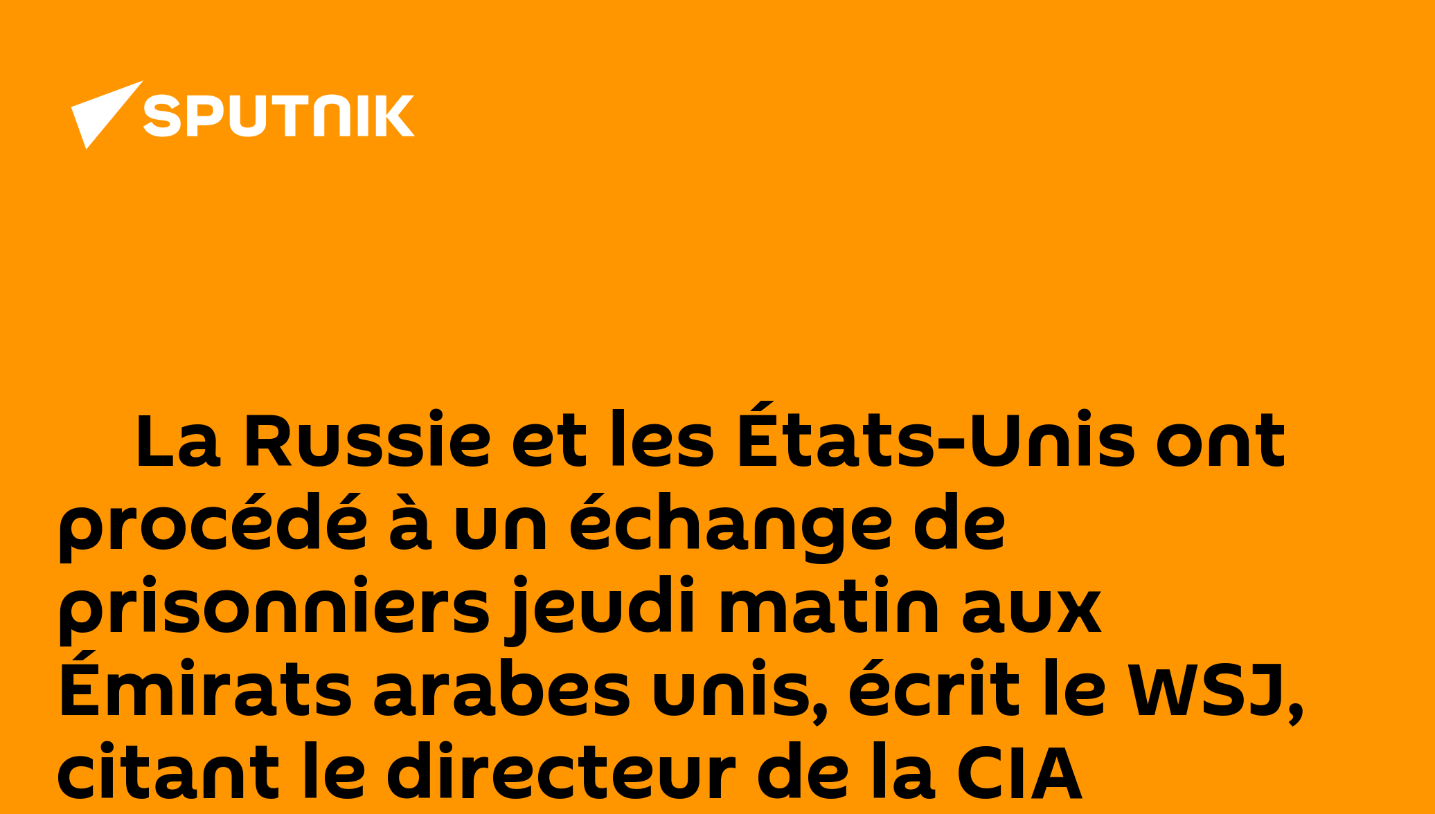 ‼ La Russie et les États-Unis ont procédé à un échange de prisonniers jeudi matin aux Émirats arabes unis, écrit le WSJ, citant le directeur de la CIAAbonnez-vous @sputnik_afrique Sputnik Afrique | X