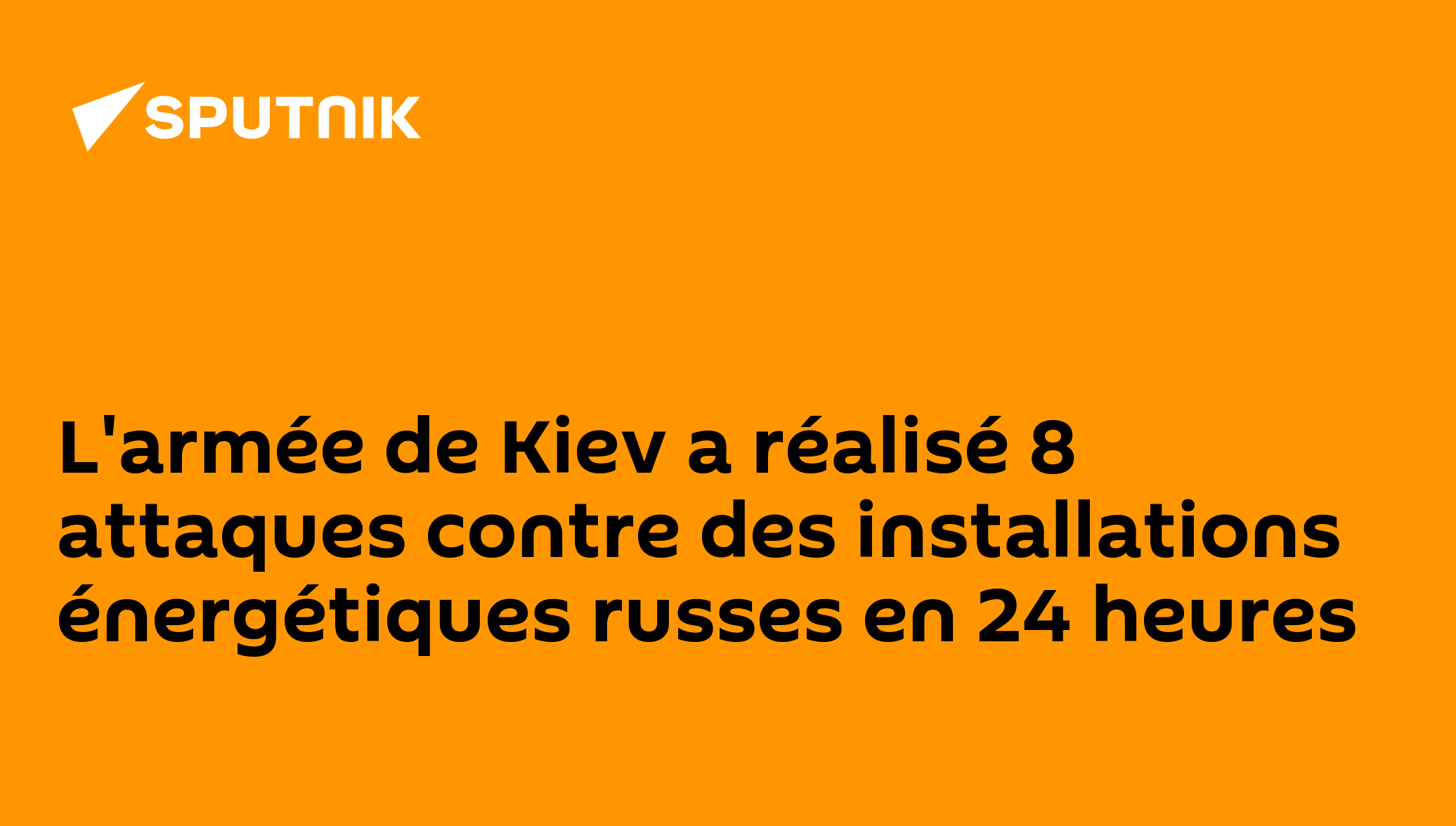 L'armée de Kiev a réalisé 8 attaques contre des installations énergétiques russes en 24 heuresDes sites ont été attaqués dans les régions russes de Belgorod, de Briansk, de Zaporojie, de Koursk, ainsi que dans la république populaire de Donetsk, indique le ministère de la Défense.Abonnez-vous @sputnik_afrique Sputnik Afrique | X