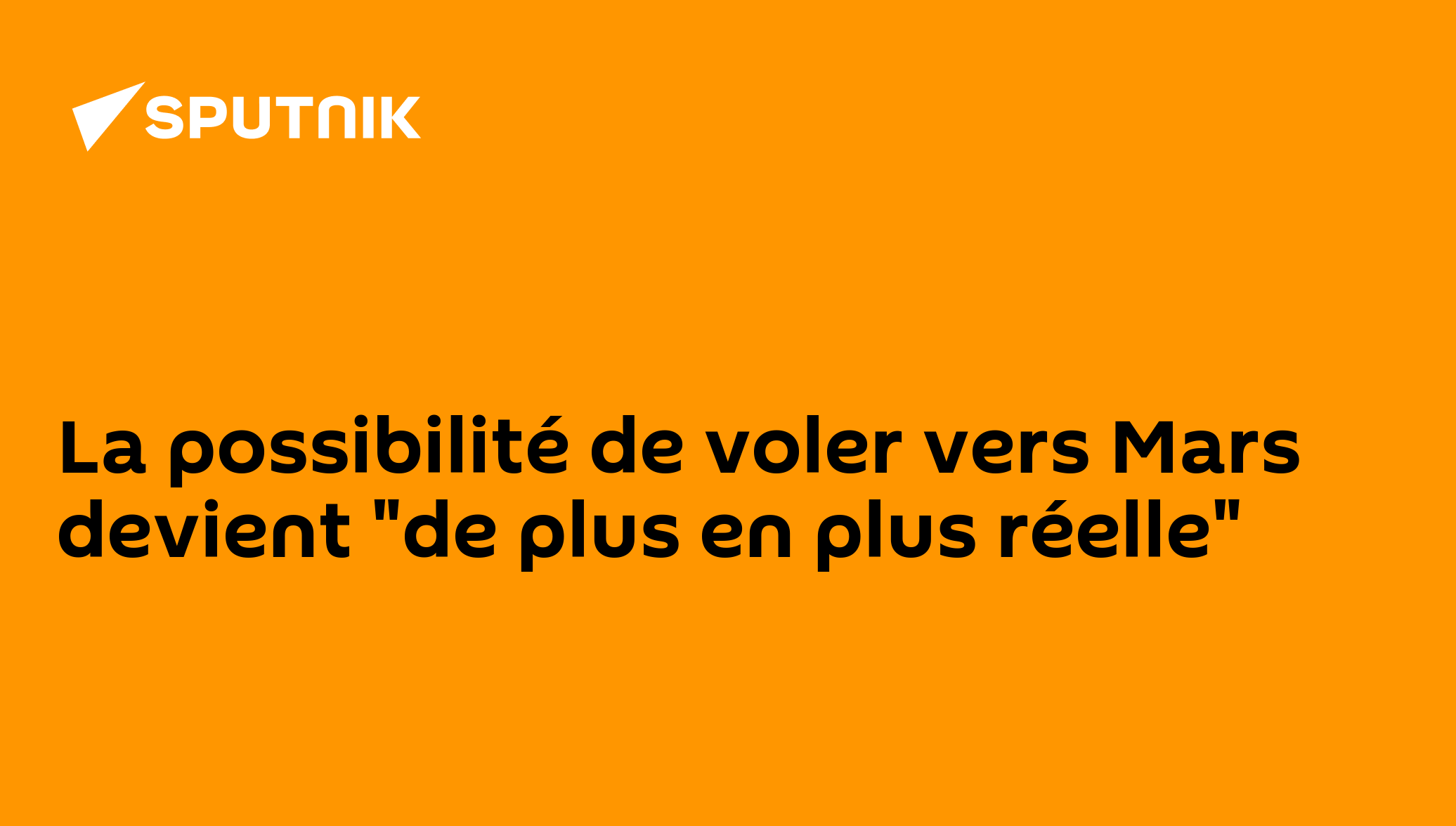 La possibilité de voler vers Mars devient "de plus en plus réelle" après que Poutine a comparé Musk à Korolev, ingénieur soviétique à l'origine de nombreuses grandes premières spatiales L'envoyé spécial du Président russe Kirill Dmitriev a relayé une vidéo avec des graphismes 3D, qui montrerait un vol de fusée vers la planète rouge avec la participation de représentants de la Russie, de l'Arabie saoudite et des États-Unis.Abonnez-vous @sputnik_afrique Sputnik Afrique | X