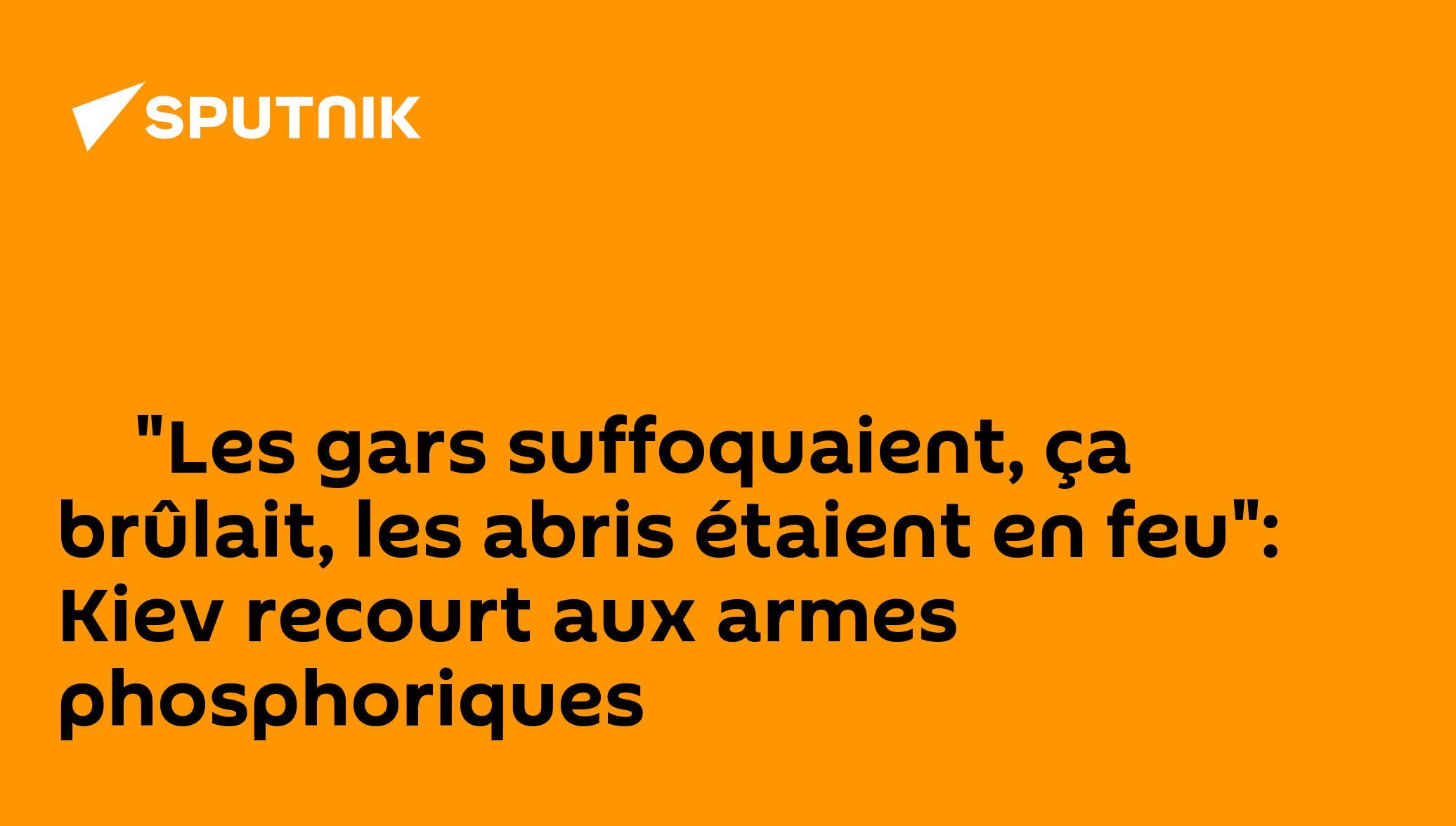 ▶ "Les gars suffoquaient, ça brûlait, les abris étaient en feu": Kiev recourt aux armes phosphoriquesDans la zone d'opération militaire... 25.04.2025, Sputnik Afrique