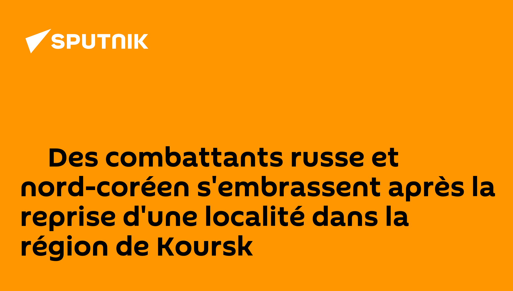 ▶ Des combattants russe et nord-coréen s'embrassent après la reprise d'une localité dans la région de KourskImages publiées par le ministère russe de la DéfenseAbonnez-vous @sputnik_afrique Sputnik Afrique | X