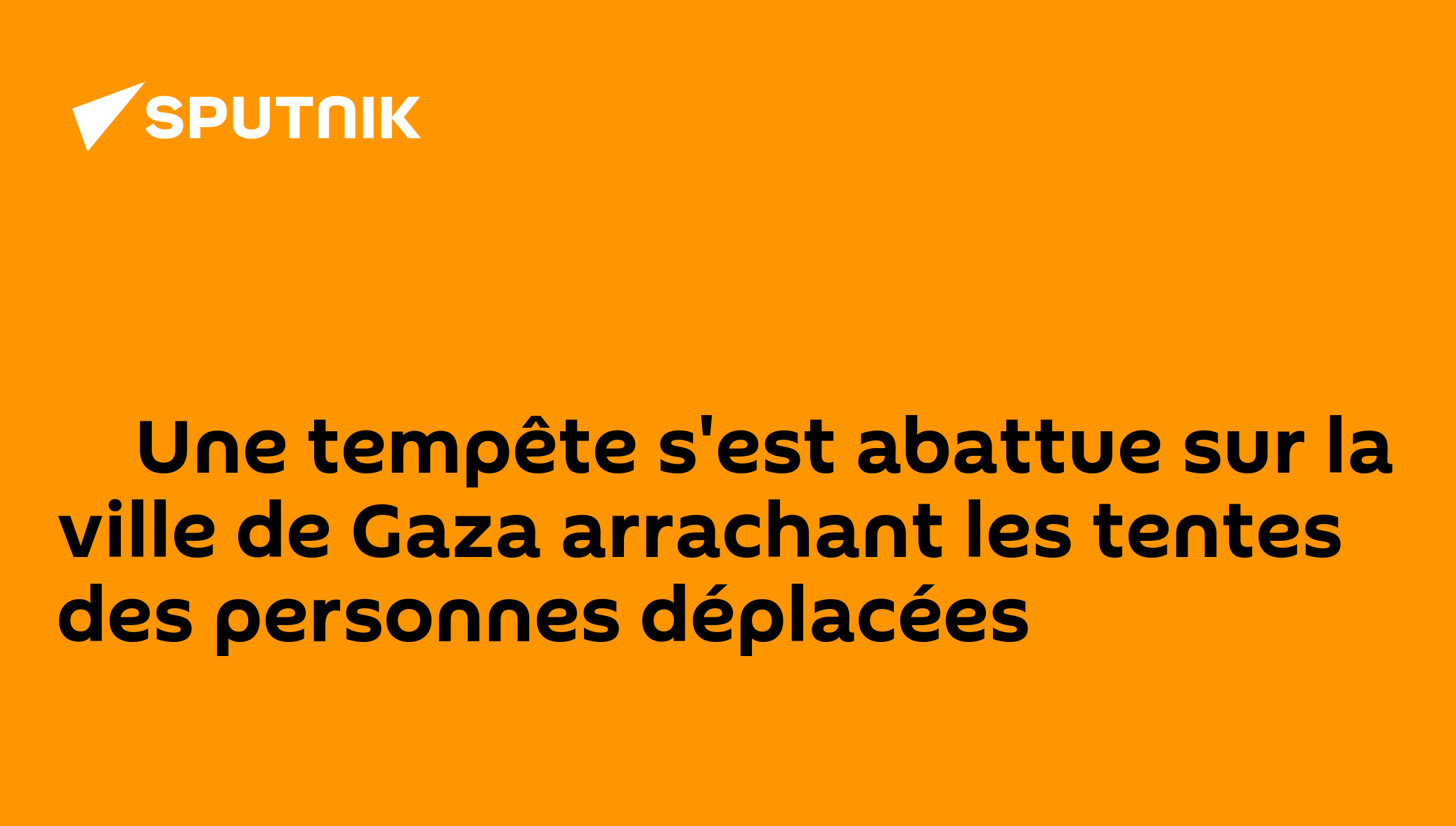 ▶ Une tempête s'est abattue sur la ville de Gaza arrachant les tentes des personnes déplacéesCes conditions météorologiques se sont ajoutées aux... 01.05.2025, Sputnik Afrique