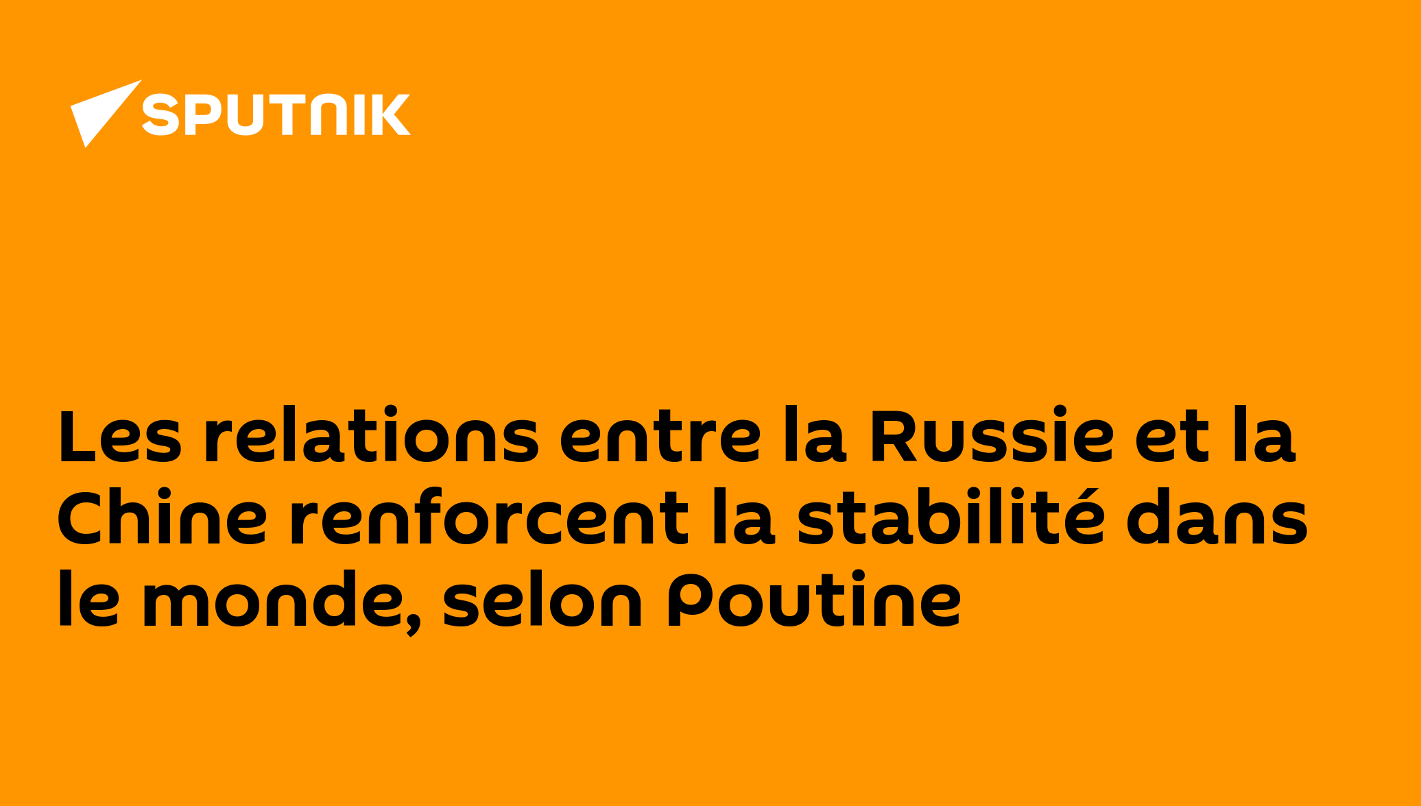 Les relations actuelles entre la Russie et la Chine renforcent la stabilité dans le monde, selon Poutine