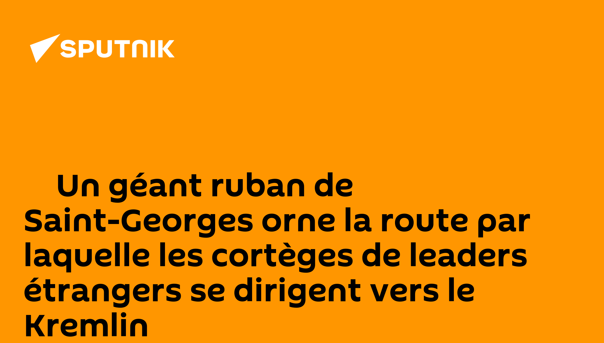 ▶ Un géant ruban de Saint-Georges orne la route par laquelle les cortèges de leaders étrangers se dirigent vers le KremlinIl s'agit de l'un des principaux symboles de la Victoire sur l'Allemagne nazie en 1945.Abonnez-vous @sputnik_afrique Sputnik Afrique | X