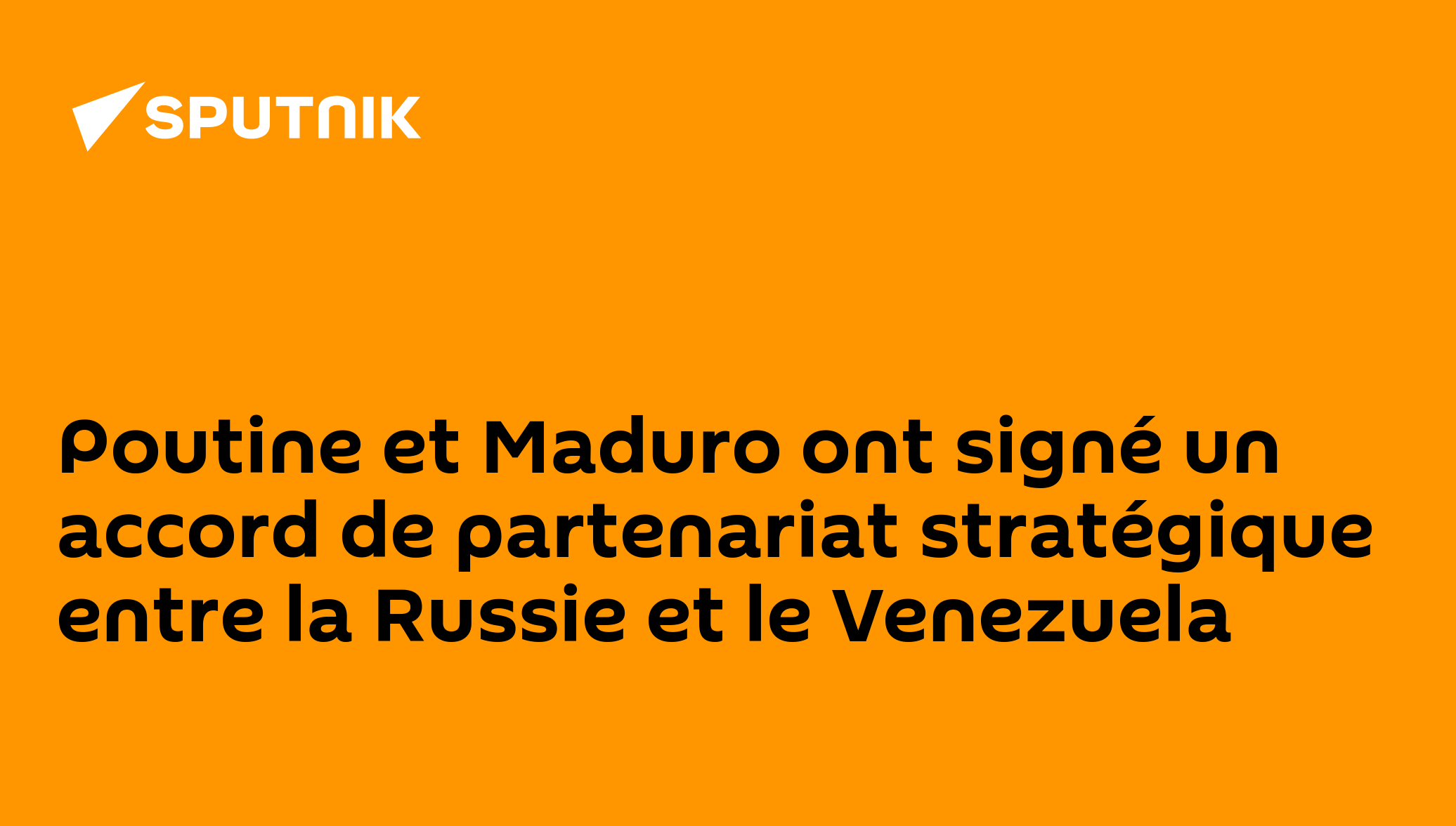 Poutine et Maduro ont signé un accord de partenariat stratégique entre la Russie et le VenezuelaLes négociations entre les deux leaders au Kremlin ont duré près de deux heures.Abonnez-vous @sputnik_afrique Sputnik Afrique | X