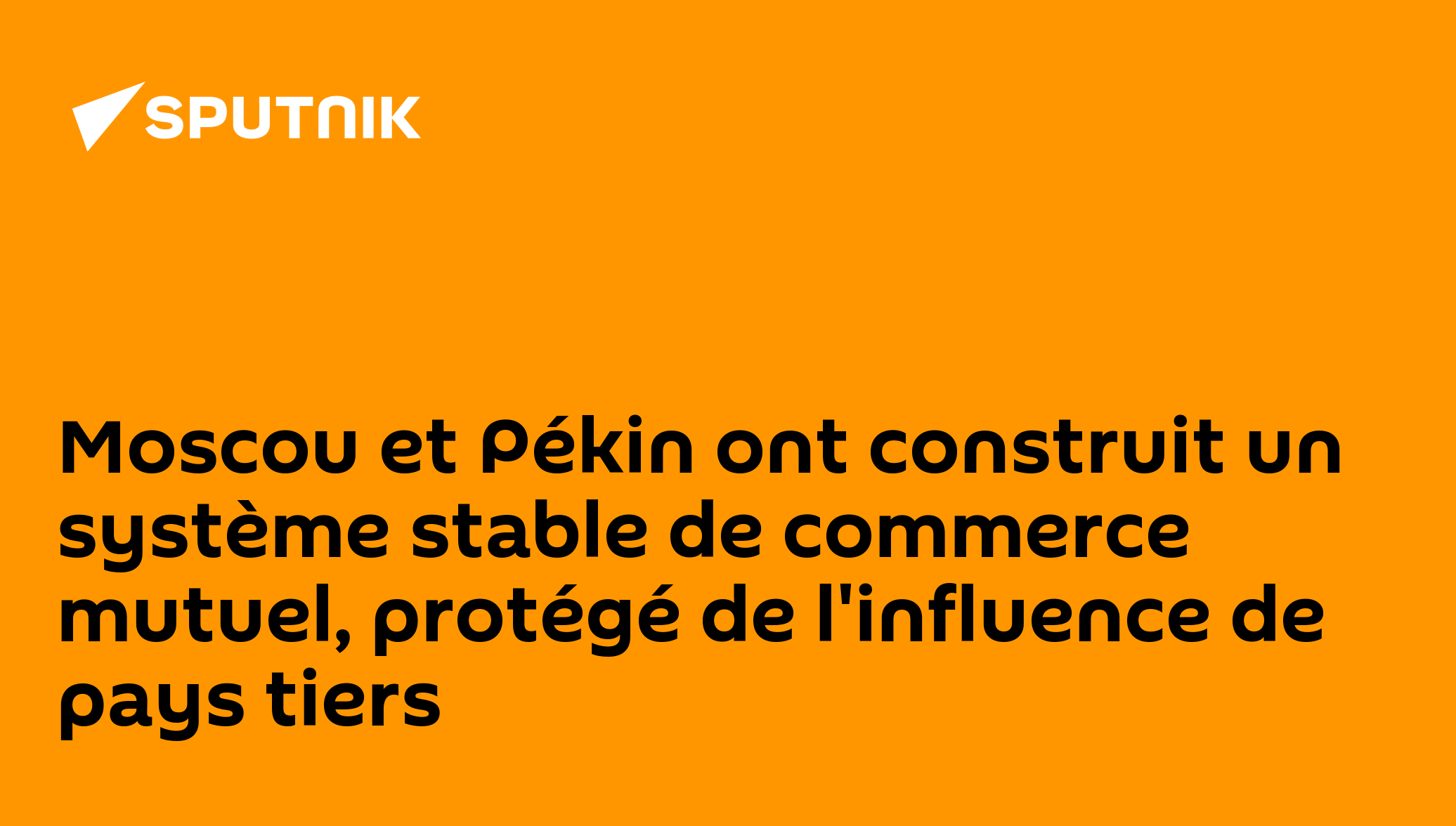 Moscou et Pékin ont construit un système stable de commerce mutuel, protégé de l'influence de pays tiers