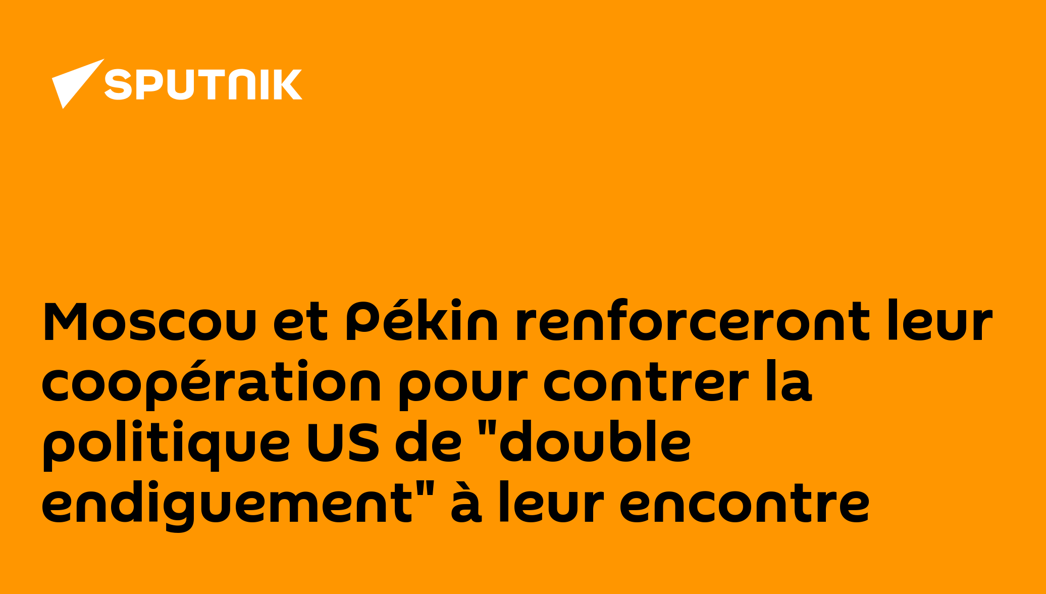 Moscou et Pékin renforceront leur coopération pour contrer la politique US de "double endiguement" à leur encontreAbonnez-vous @sputnik_afrique Sputnik Afrique | X