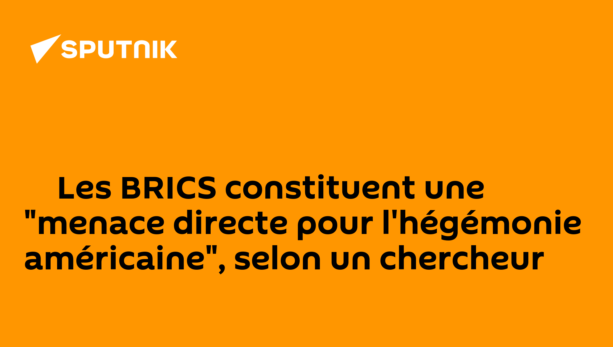 ▶ Les BRICS constituent une "menace directe pour l'hégémonie américaine", selon un chercheur