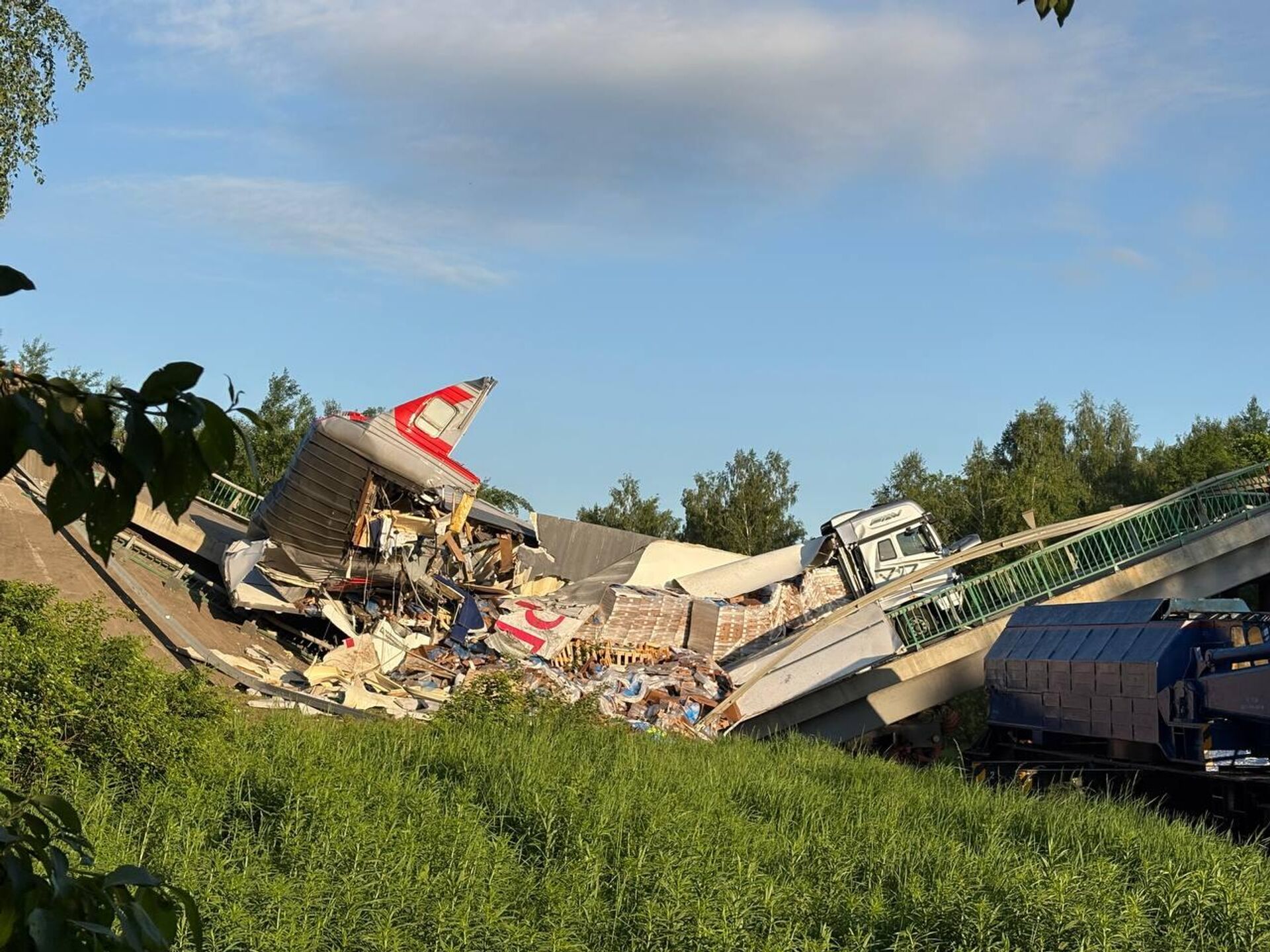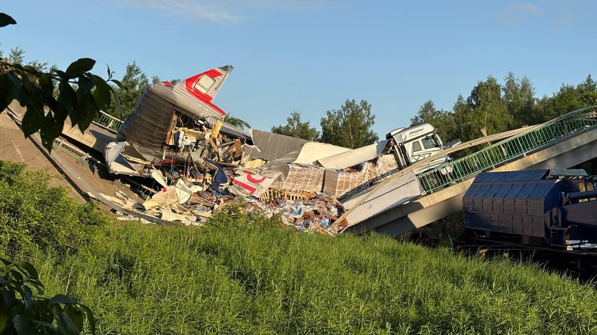 la cause de l'accident est l'explosion d'un pont routier directement au-dessus des voies ferrées, a déclaré le gouverneur de la région, Alexander Bogomaz;
