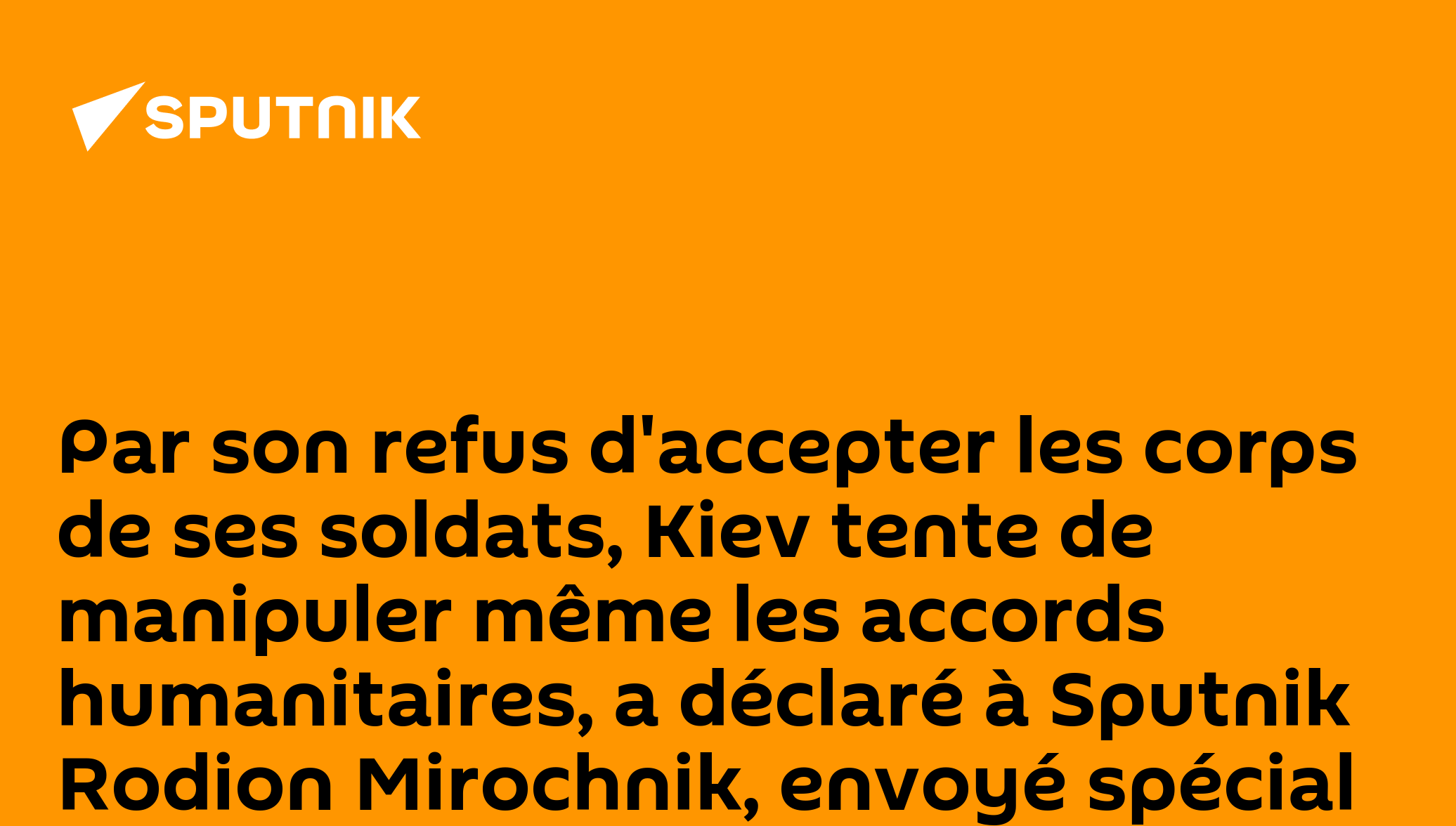 Par son refus d'accepter les corps de ses soldats, Kiev tente de manipuler même les accords humanitaires, a déclaré à Sputnik Rodion Mirochnik, envoyé spécial du Président russeAbonnez-vous @sputnik_afrique Sputnik Afrique | X