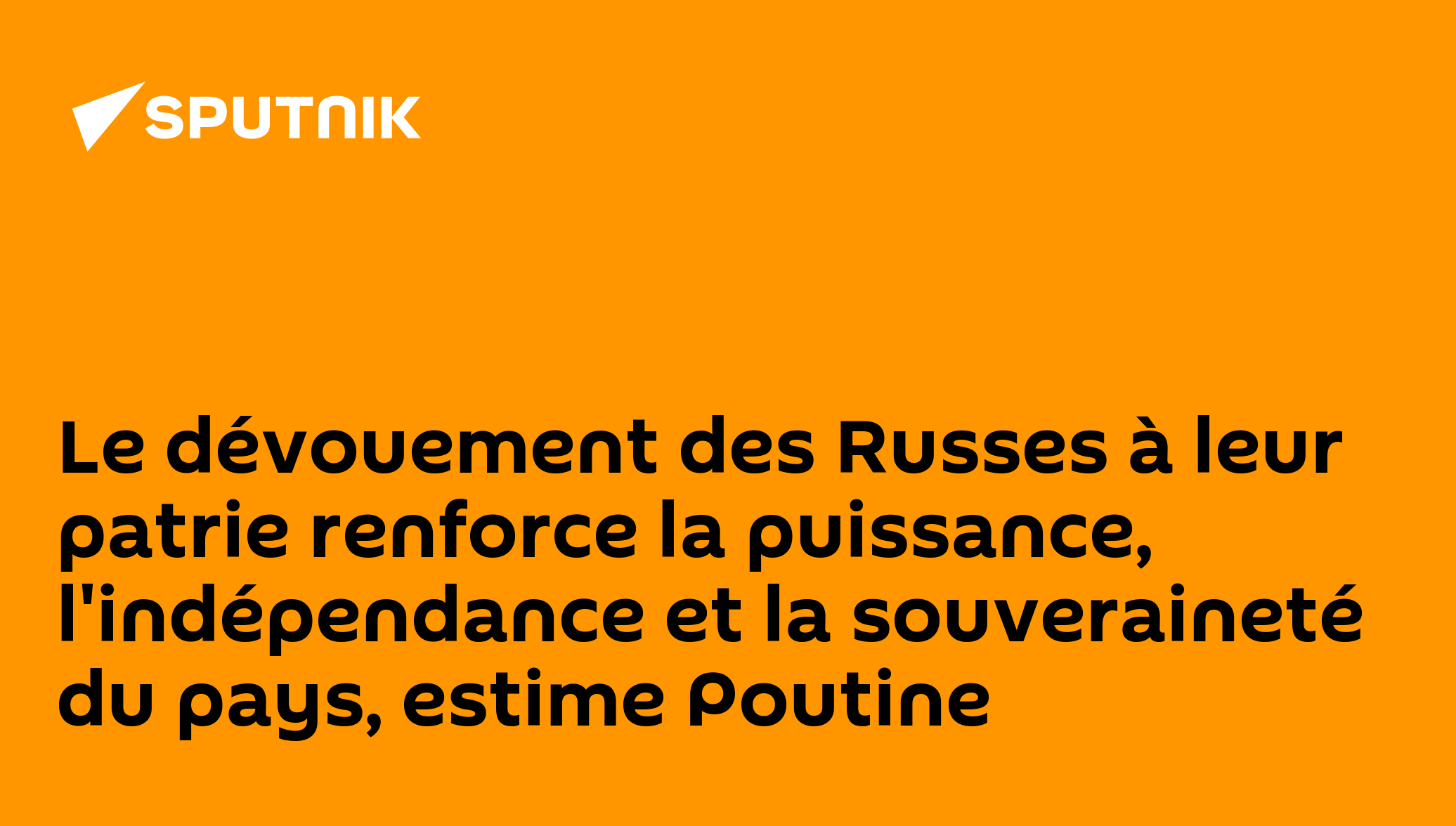 Le dévouement des Russes à leur patrie renforce la puissance, l'indépendance et la souveraineté du pays, estime Poutine Le Président russe a adressé ses vœux à ses concitoyens à l'occasion de la fête de la Russie lors de la cérémonie de remise des prix aux héros du travail et aux lauréats des prix d'ÉtatAbonnez-vous @sputnik_afrique Sputnik Afrique | X