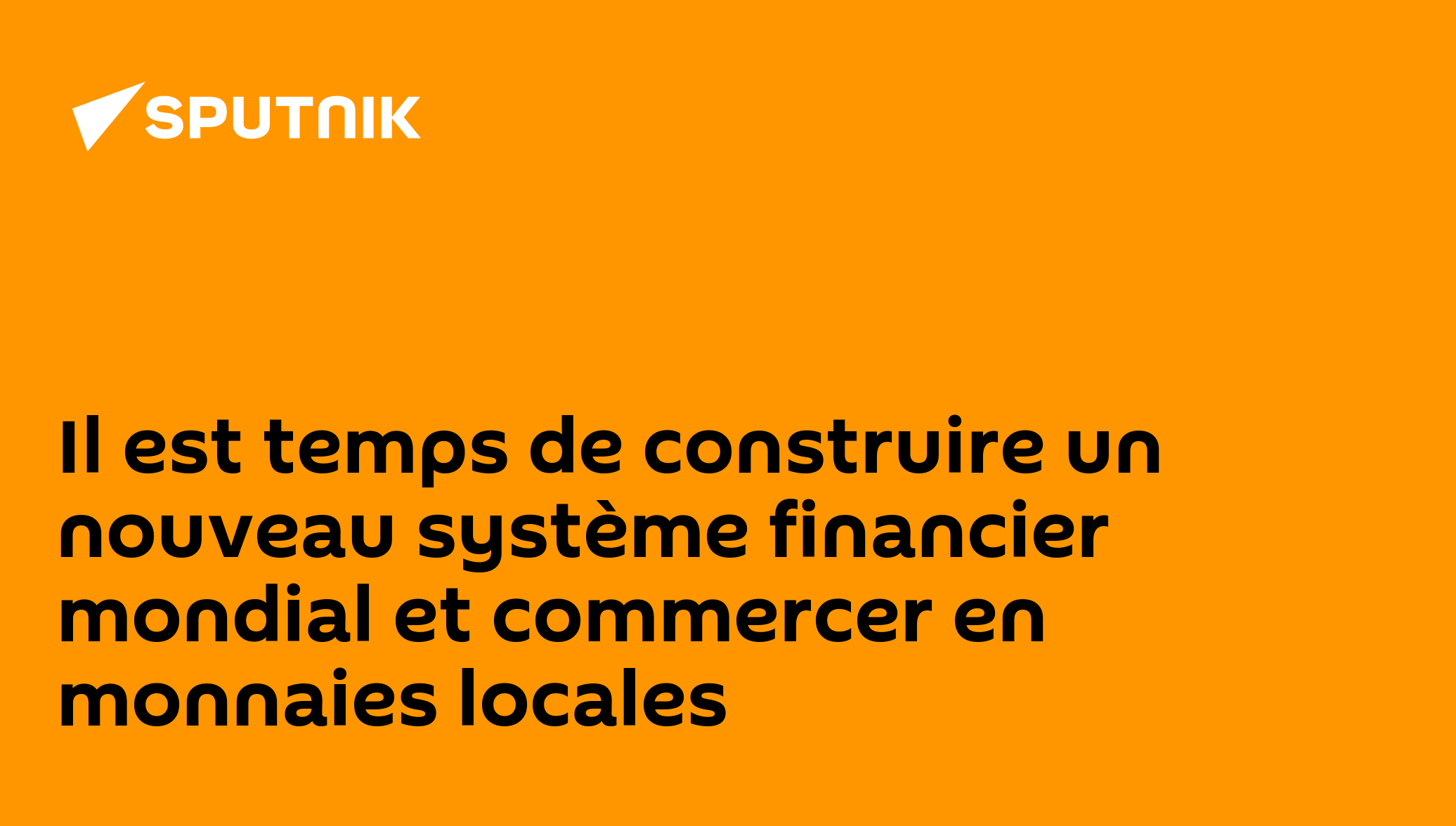 Il est temps de construire un nouveau système financier mondial et commercer en monnaies locales