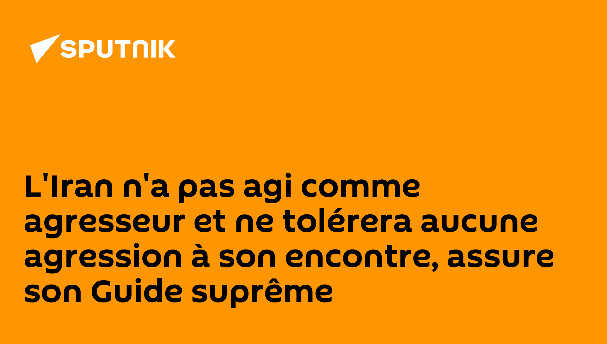 L'Iran n'a pas agi comme agresseur et ne tolérera aucune agression à son encontre, assure son Guide suprêmeCe message a été publié sur la page X d'Ali KhameneiAbonnez-vous @sputnik_afrique Sputnik Afrique | X