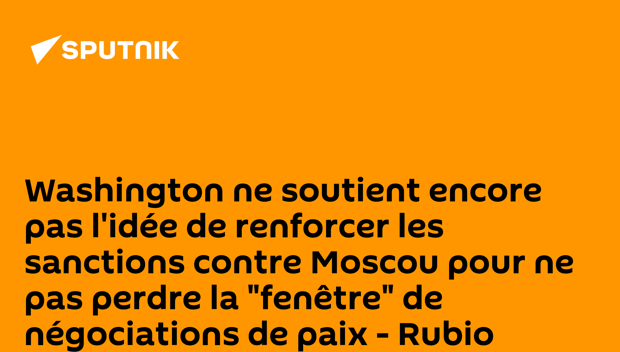 Washington ne soutient encore pas l'idée de renforcer les sanctions contre Moscou pour ne pas perdre la "fenêtre" de négociations de paix - Rubio