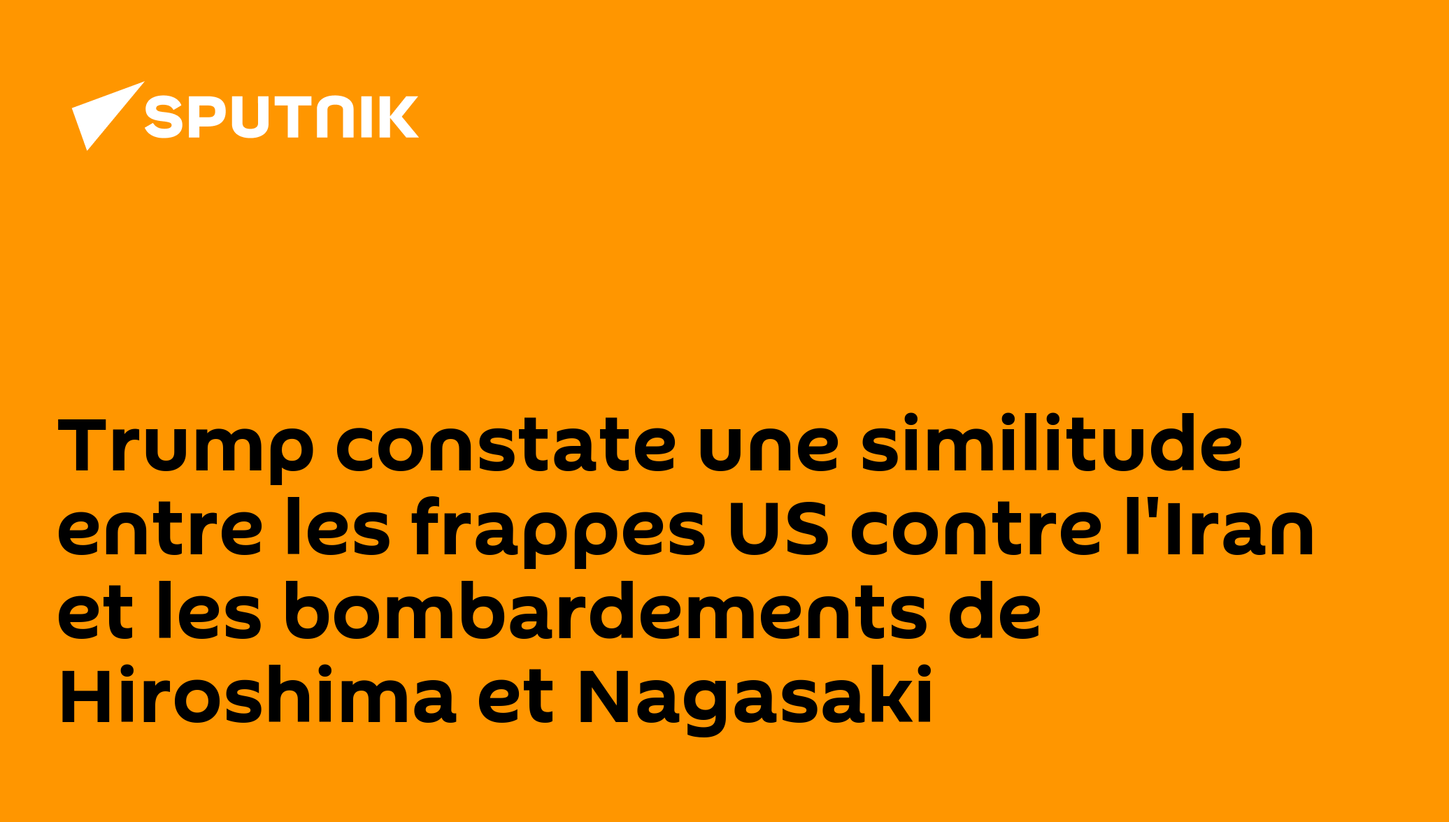 Trump constate une similitude entre les frappes US contre l'Iran et les bombardements de Hiroshima et Nagasaki"Ce coup a mis fin à la guerre. Je ne veux pas faire de parallèle avec Hiroshima, je ne veux pas comparer avec Nagasaki, mais c'est essentiellement quelque chose de similaire qui a mis fin à cette guerre".Abonnez-vous @sputnik_afrique Sputnik Afrique | X