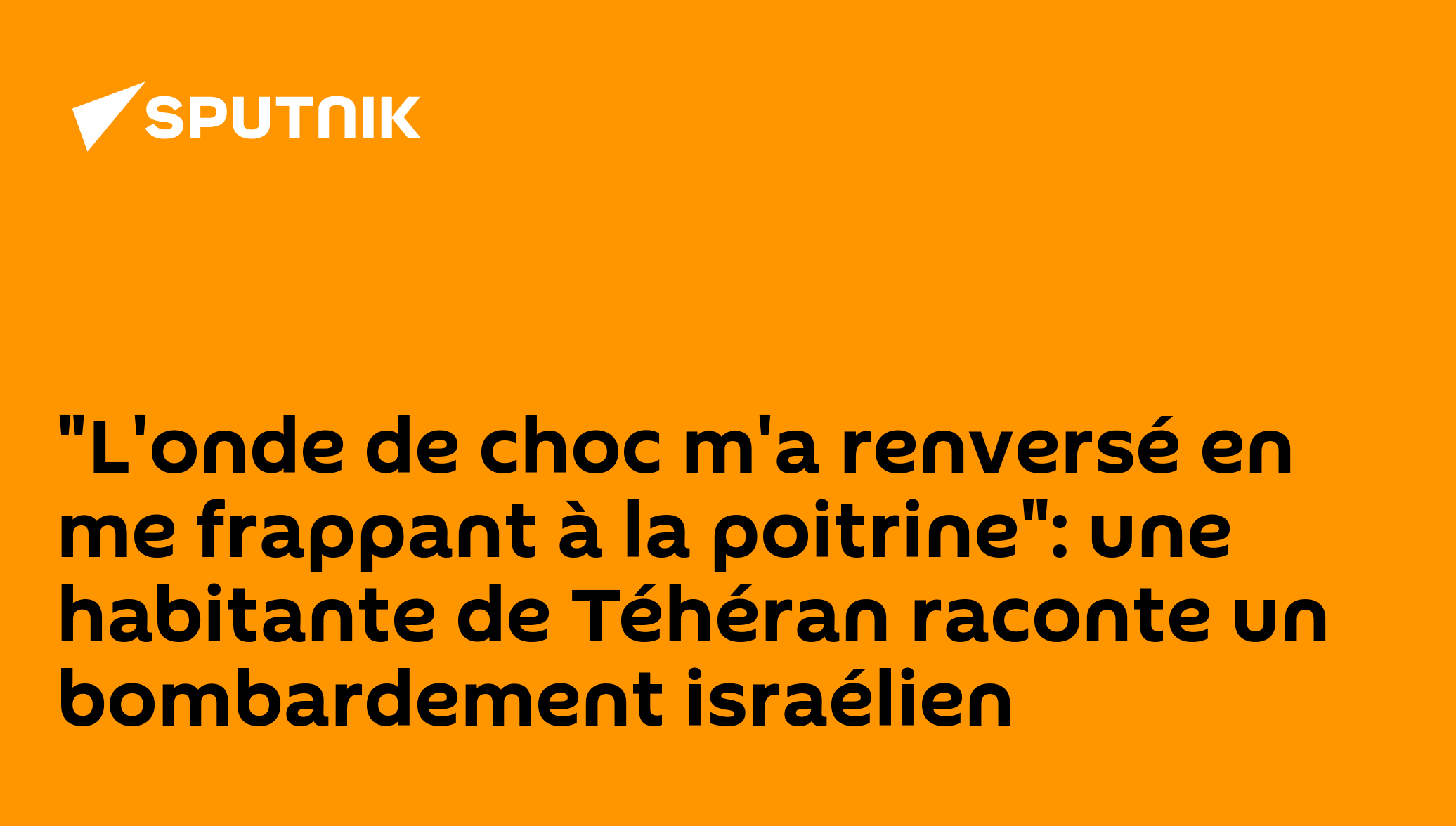 "L'onde de choc m'a renversé en me frappant à la poitrine": une habitante de Téhéran raconte un bombardement israélien"Je travaillais chez moi… J'ai entendu un avion voler à basse altitude. Puis une énorme explosion. J'avais les jambes qui tremblaient. La deuxième explosion était si proche que j'ai senti la chaleur et un coup au niveau de la poitrine", confie la femme à Sputnik, témoin des frappes survenues il y a quelques jours. "Il y a eu deux autres explosions. L'électricité a été coupée. Les sirènes retentissaient partout. J'ai survécu, mais je suis sûre que des vies innocentes ont pris fin cette nuit-là", a-t-elle déploré.Abonnez-vous @sputnik_afrique Sputnik Afrique | X