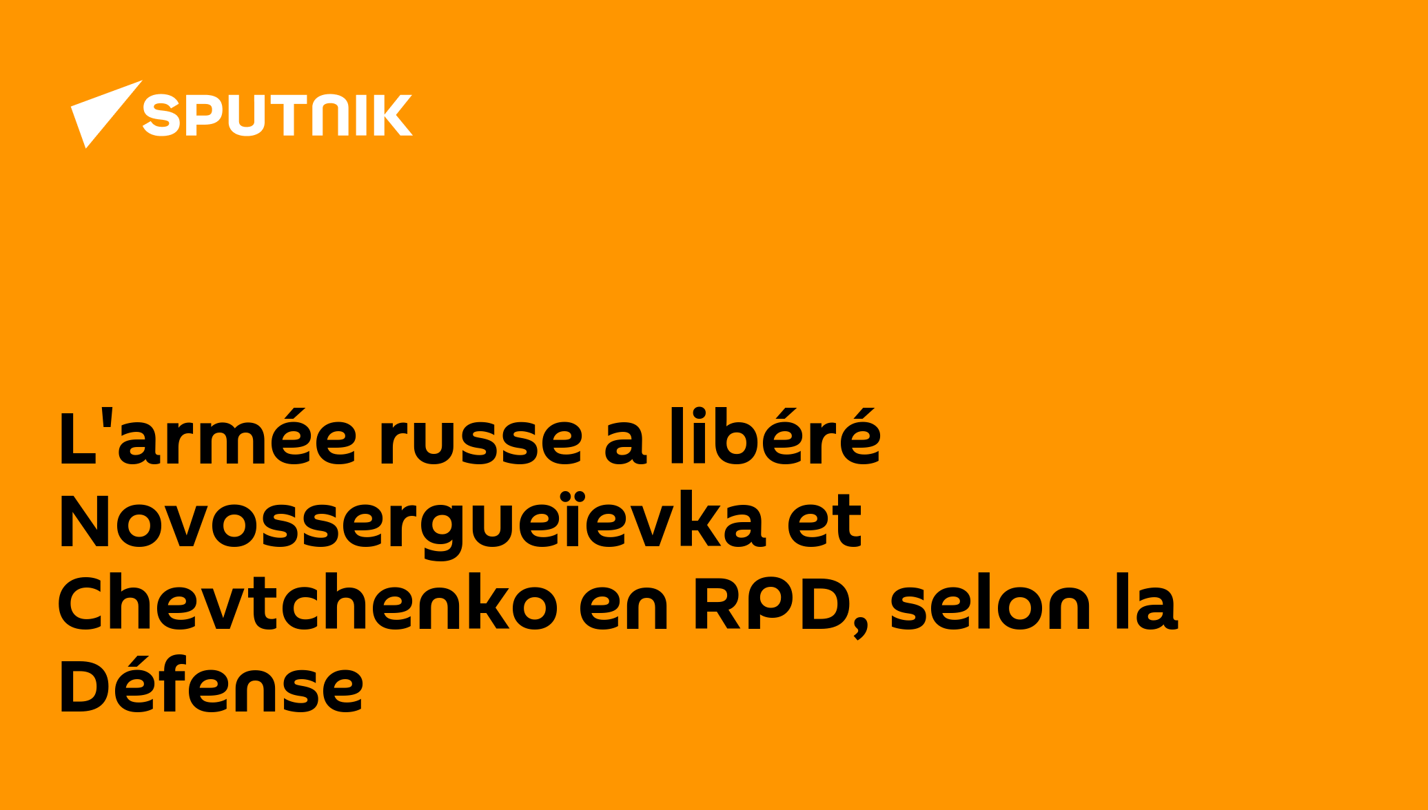 L'armée russe a libéré Novossergueïevka et Chevtchenko en RPD, selon la Défense