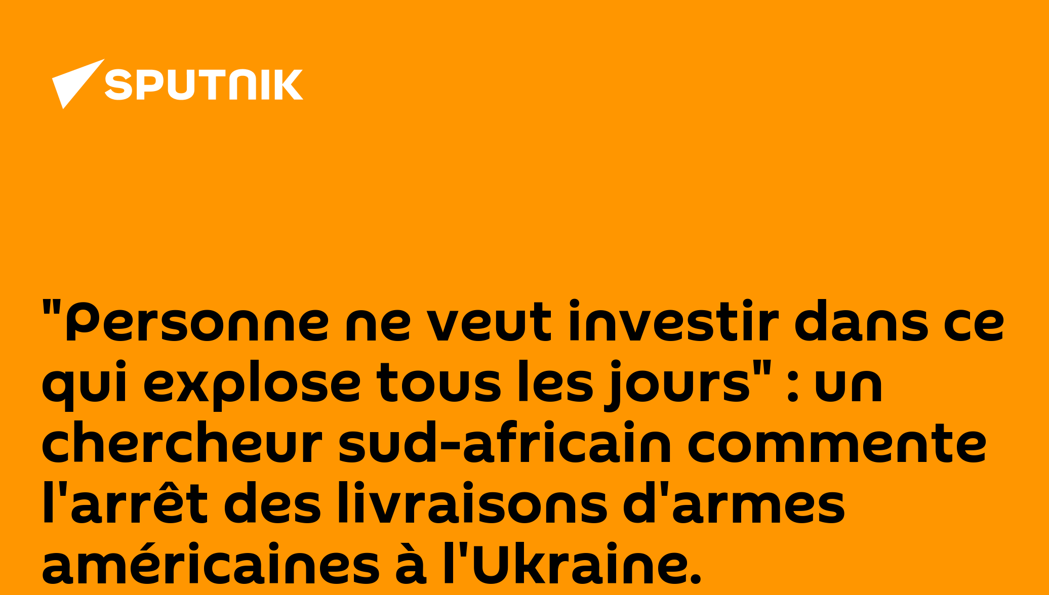 "Personne ne veut investir dans ce qui explose tous les jours" : un chercheur sud-africain commente l'arrêt des livraisons d'armes américaines à l'Ukraine.