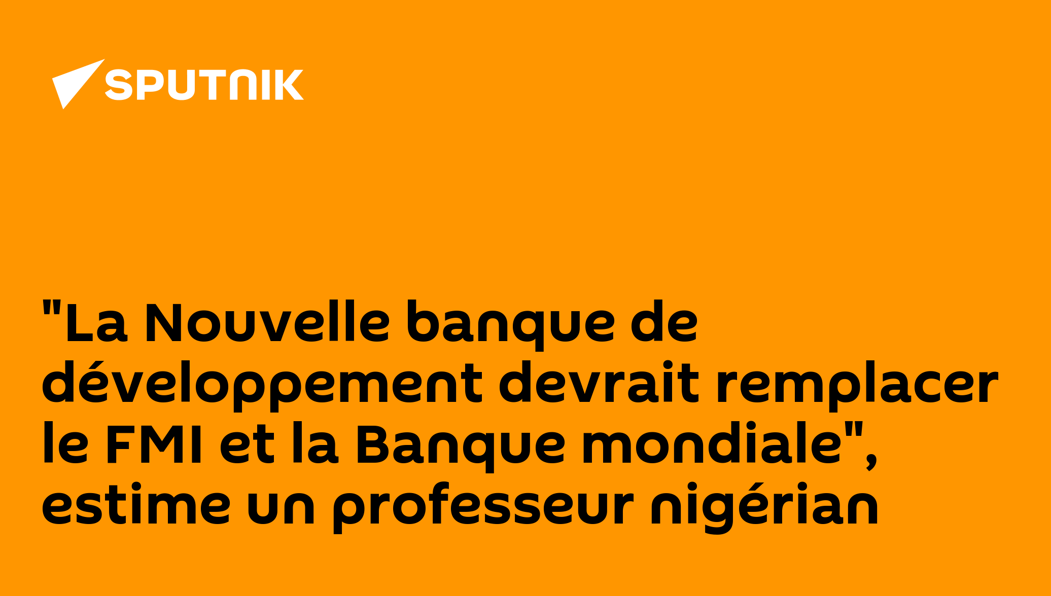 "La Nouvelle banque de développement devrait remplacer le FMI et la Banque mondiale", estime un professeur nigérian