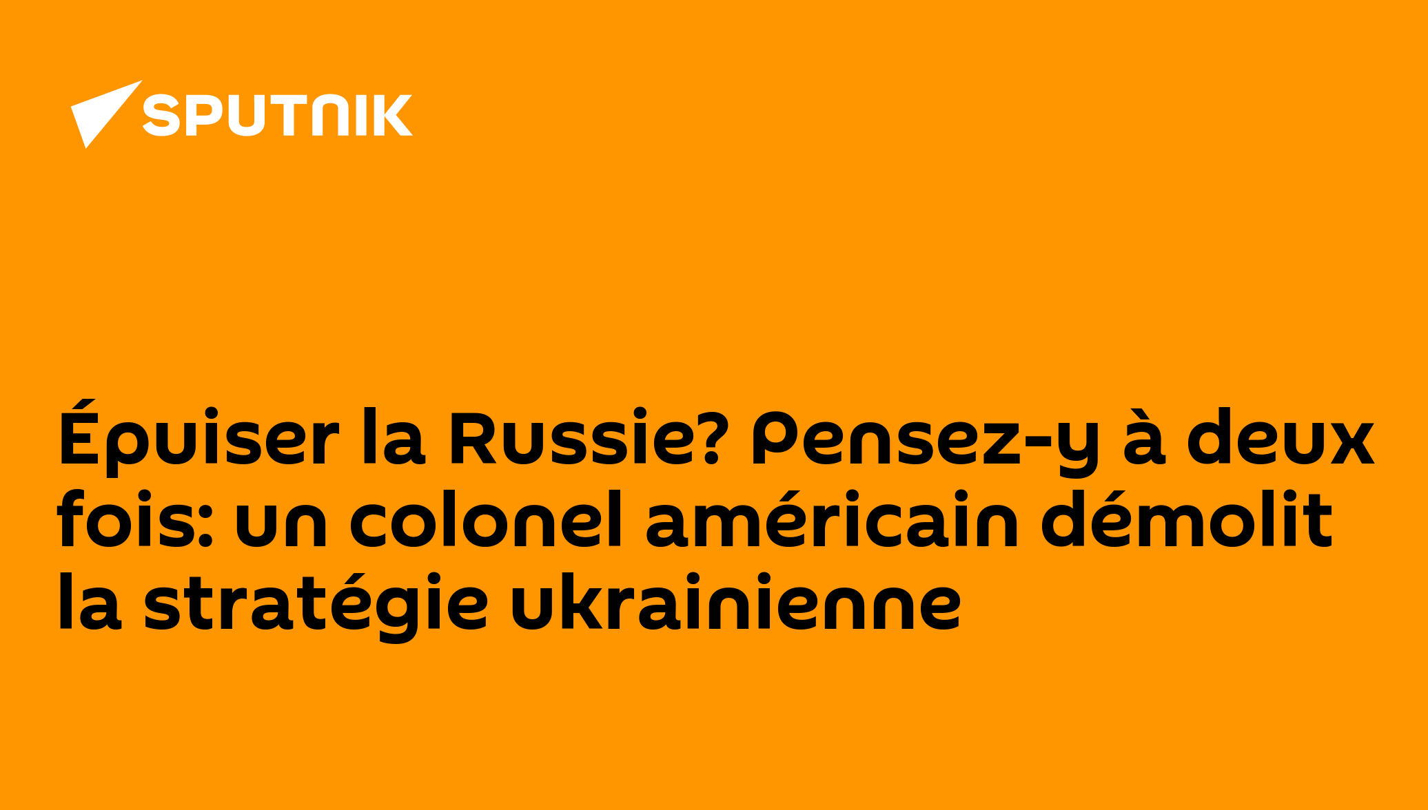 Épuiser la Russie? Pensez-y à deux fois: un colonel américain démolit la stratégie ukrainienne