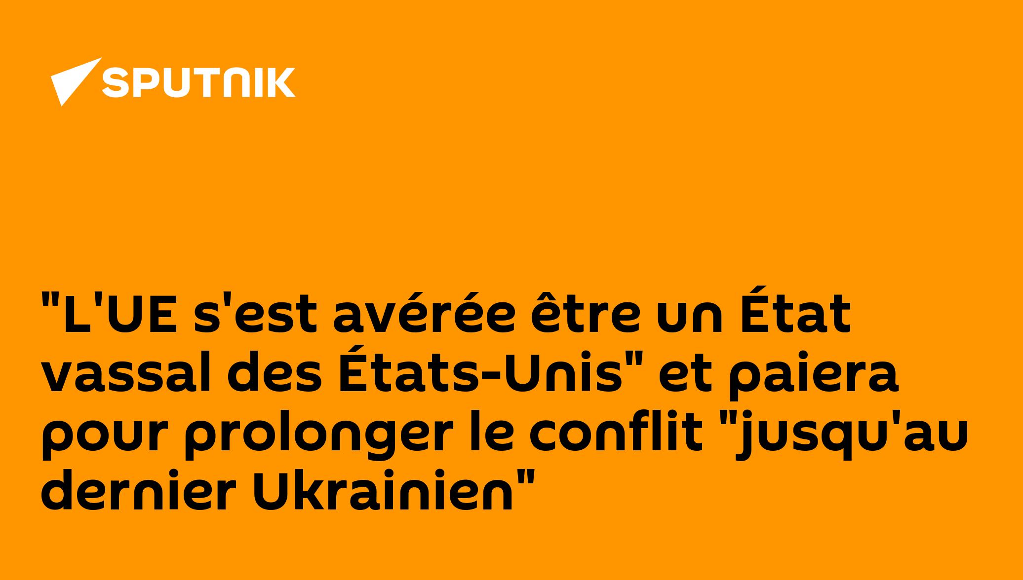 "L'UE s'est avérée être un État vassal des États-Unis" et paiera pour prolonger le conflit "jusqu'au dernier Ukrainien"