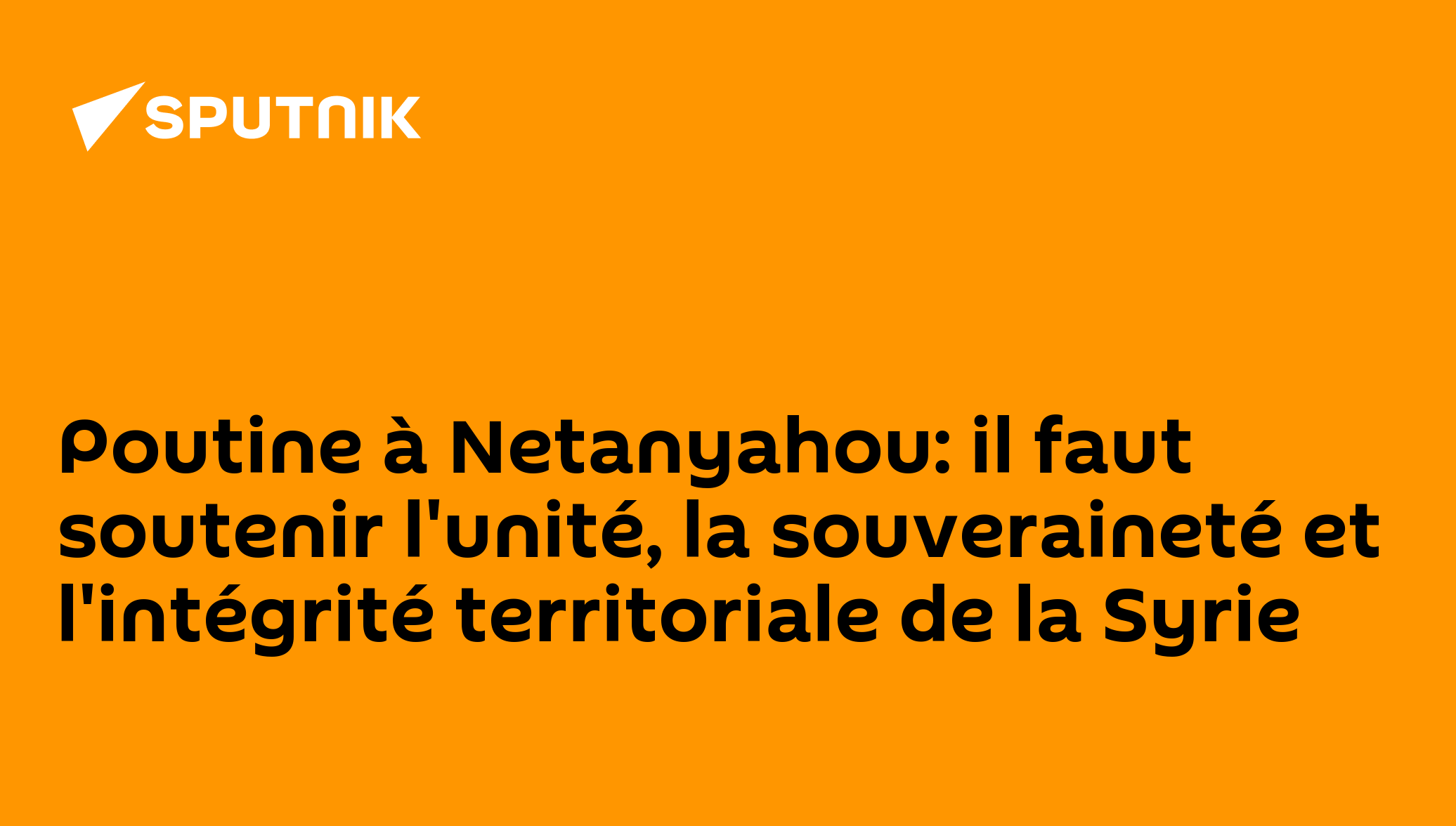 Poutine à Netanyahou: il faut soutenir l'unité, la souveraineté et l'intégrité territoriale de la Syrie Lors de son entretien avec le Premier ministre israélien , le Président russe a également indiqué sa volonté de contribuer à la recherche d'une solution négociée au programme nucléaire iranien .Abonnez-vous @sputnik_afrique Sputnik Afrique | X