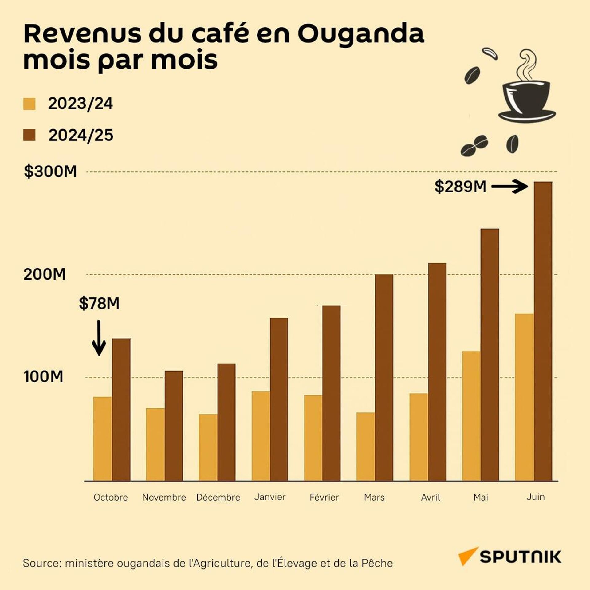 L'Ouganda double ses recettes d'exportation de café et devient champion du continent