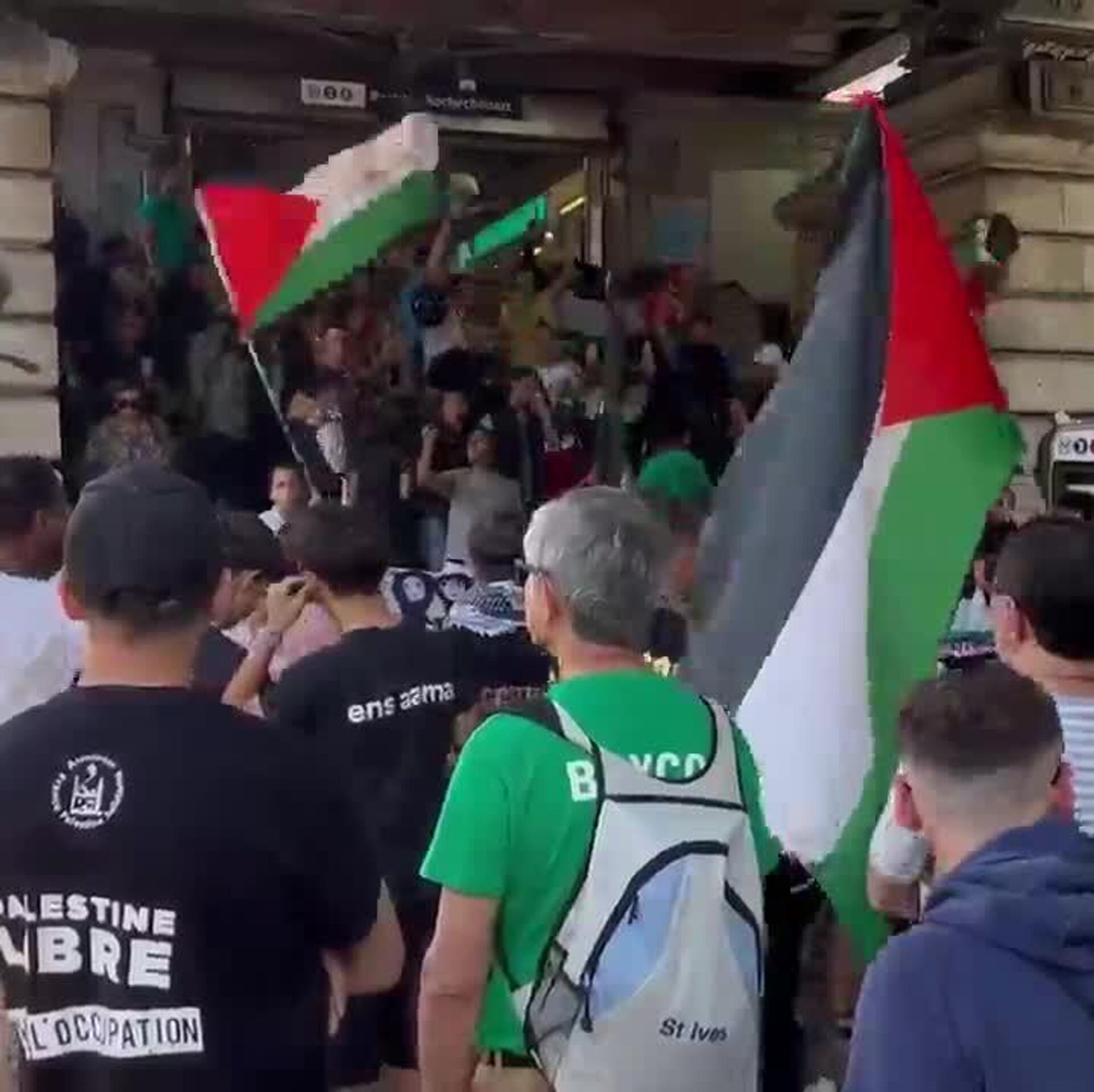 "Stop génocide! Soutien à la résistance!", "Notre humanité meurt à Gaza" indiquent les pancartes.