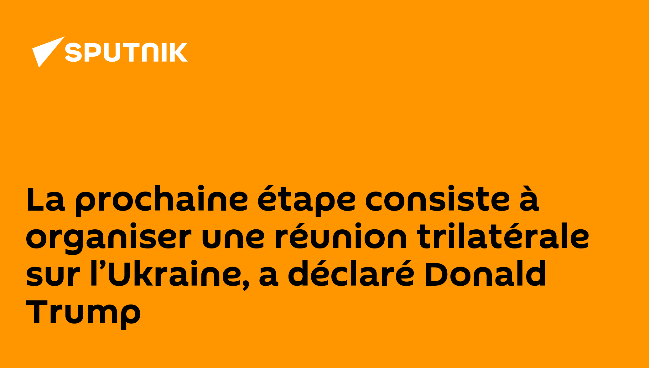 La prochaine étape consiste à organiser une réunion trilatérale sur l’Ukraine, a déclaré Donald TrumpPour sa part, Volodymyr Zelensky a indiqué que cette réunion portera notamment sur les questions territoriales.Abonnez-vous @sputnik_afrique Sputnik Afrique | X