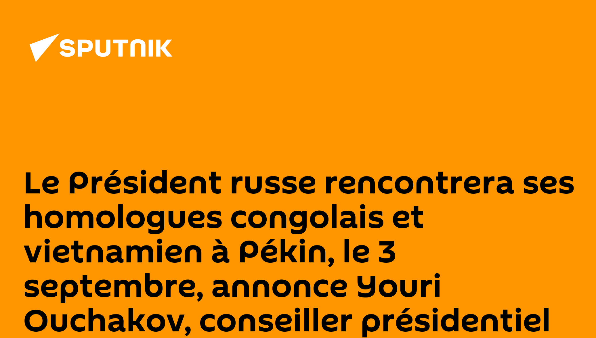 Le Président russe rencontrera ses homologues congolais et vietnamien à Pékin, le 3 septembre, annonce Youri Ouchakov, conseiller présidentiel Abonnez-vous @sputnik_afrique Sputnik Afrique | X