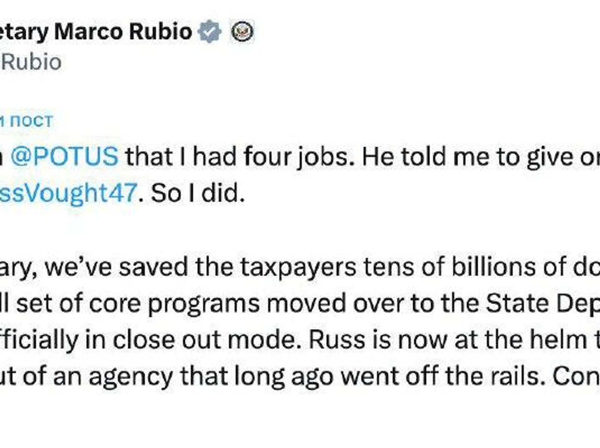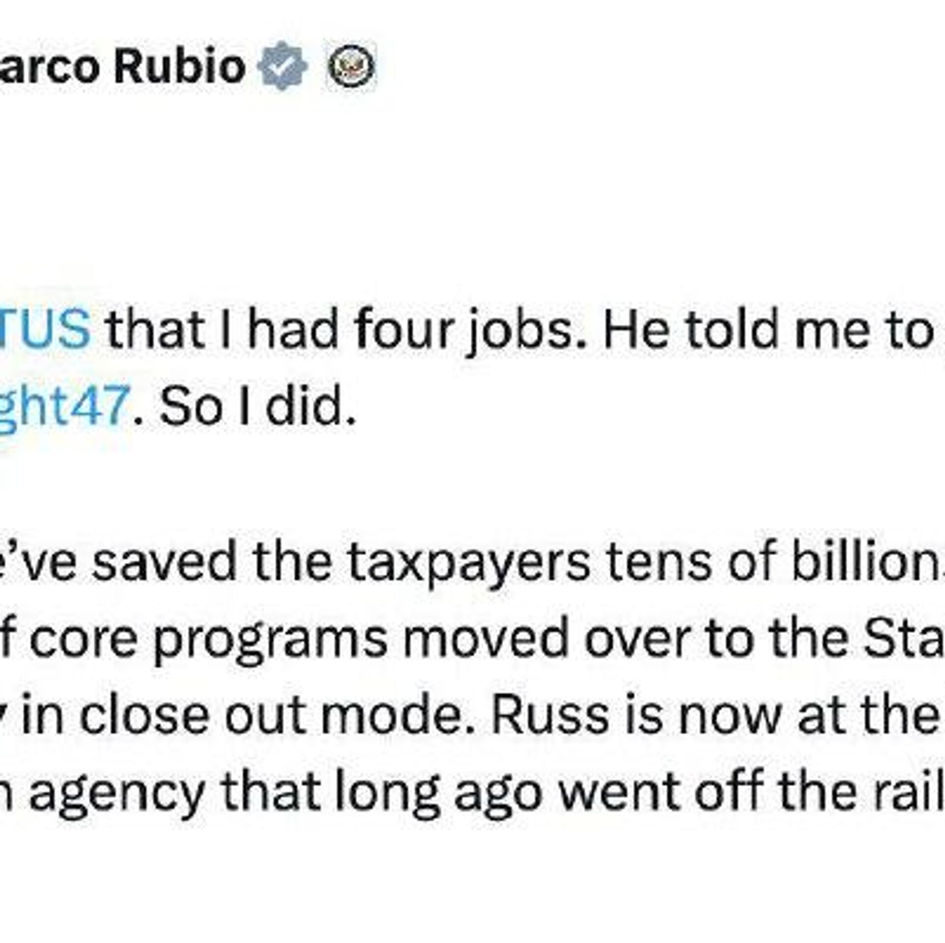 Marco Rubio a annoncé la fin des travaux de l'USAID