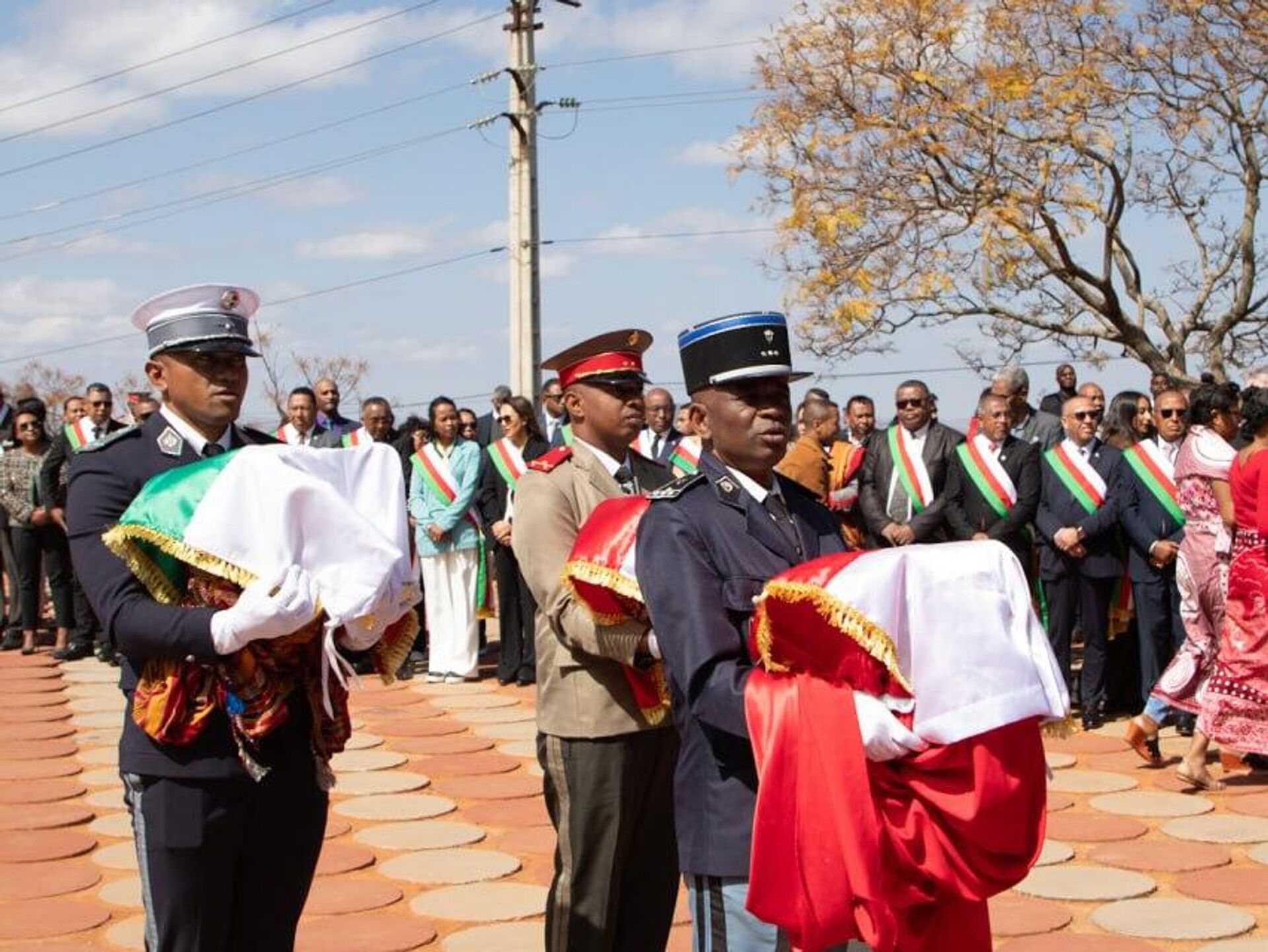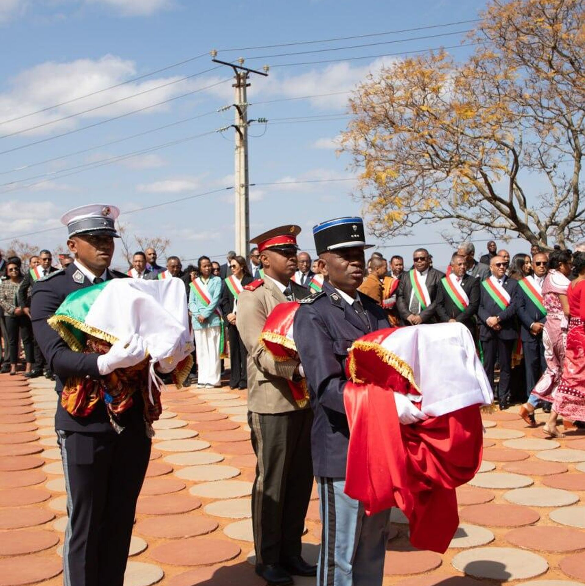 Le Président malgache Andry Rajoelina était présent à la cérémonie militaire honorant la mémoire du héros, selon un communiqué du ministère des Affaires étrangères.