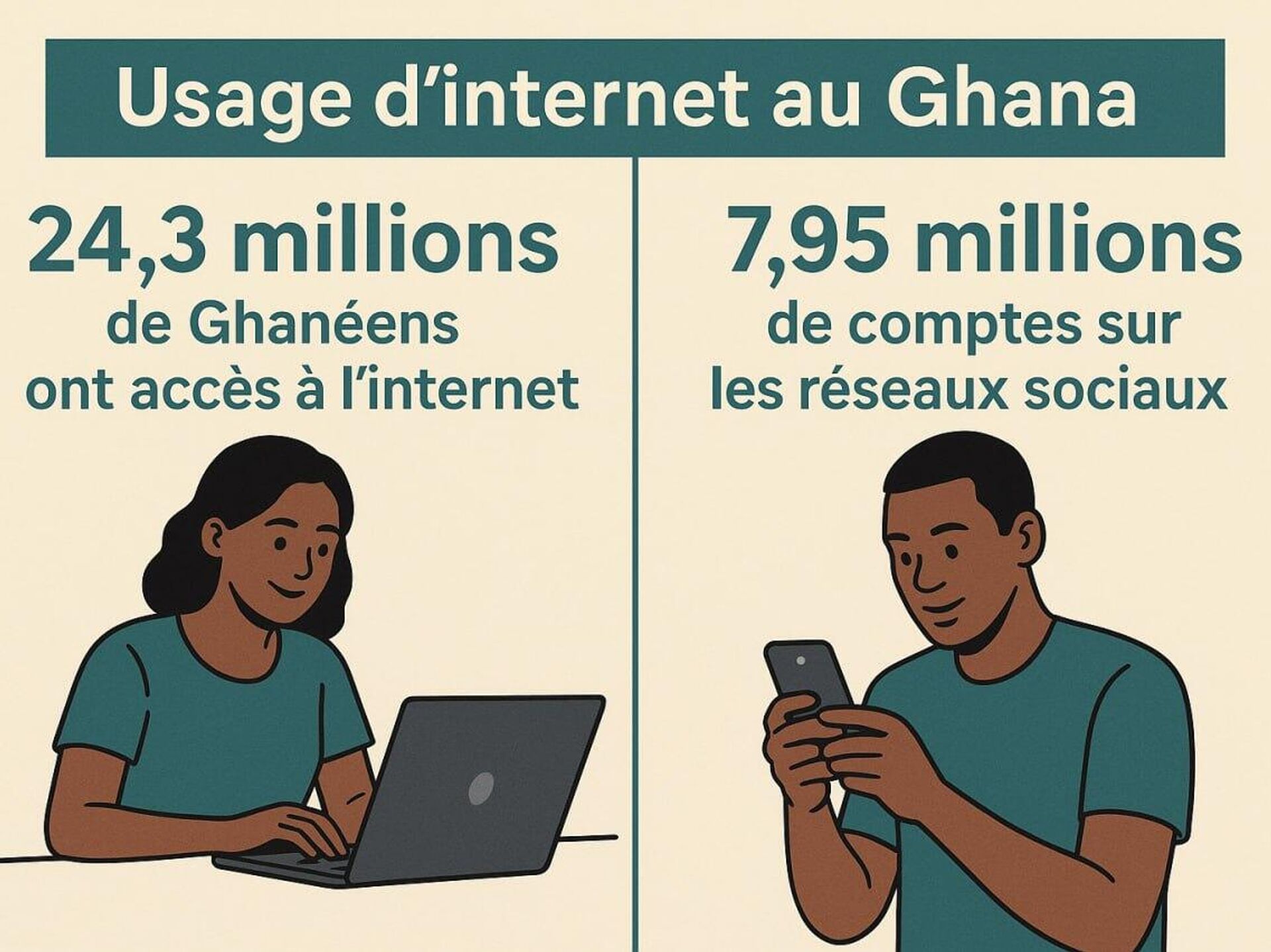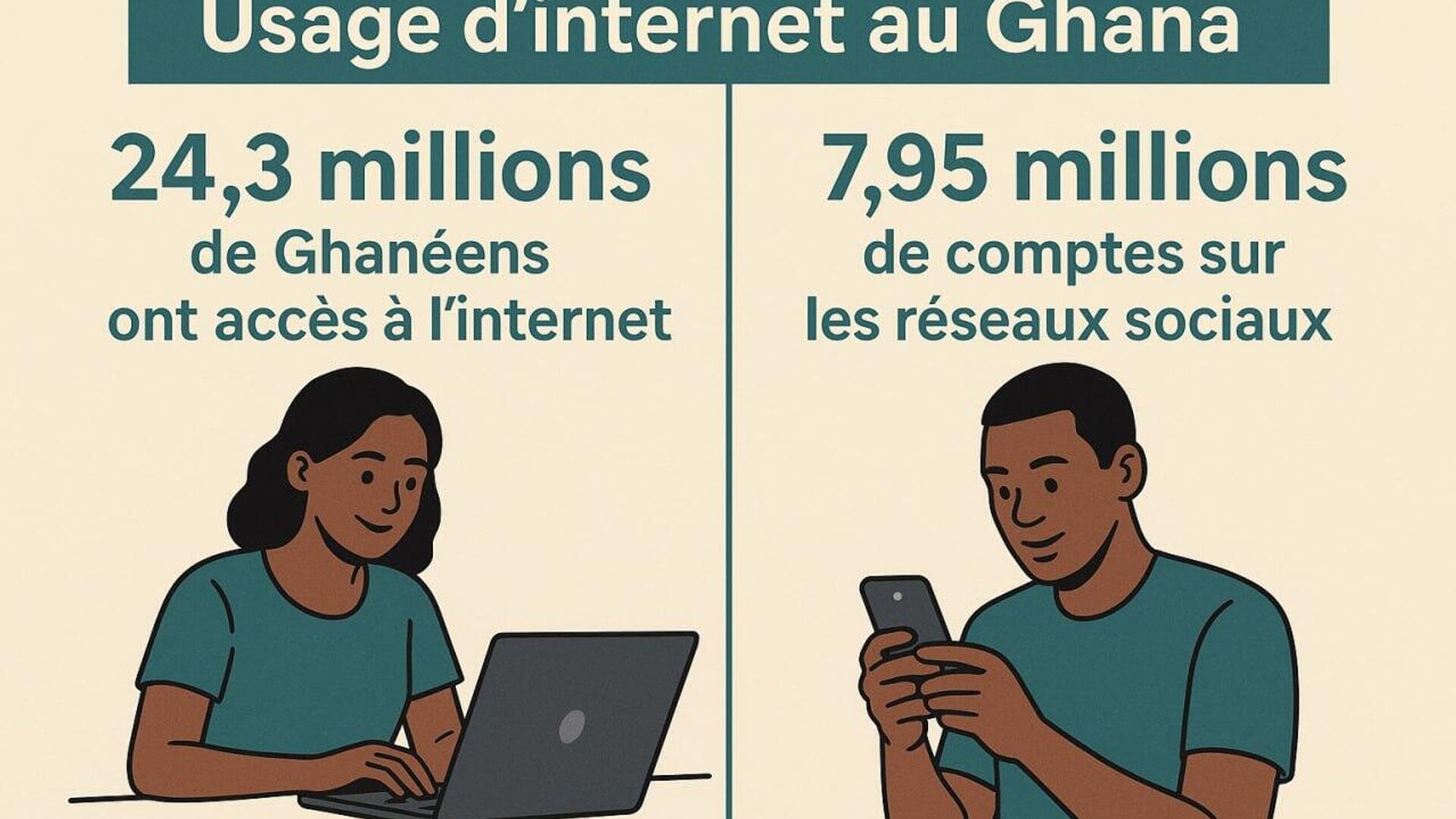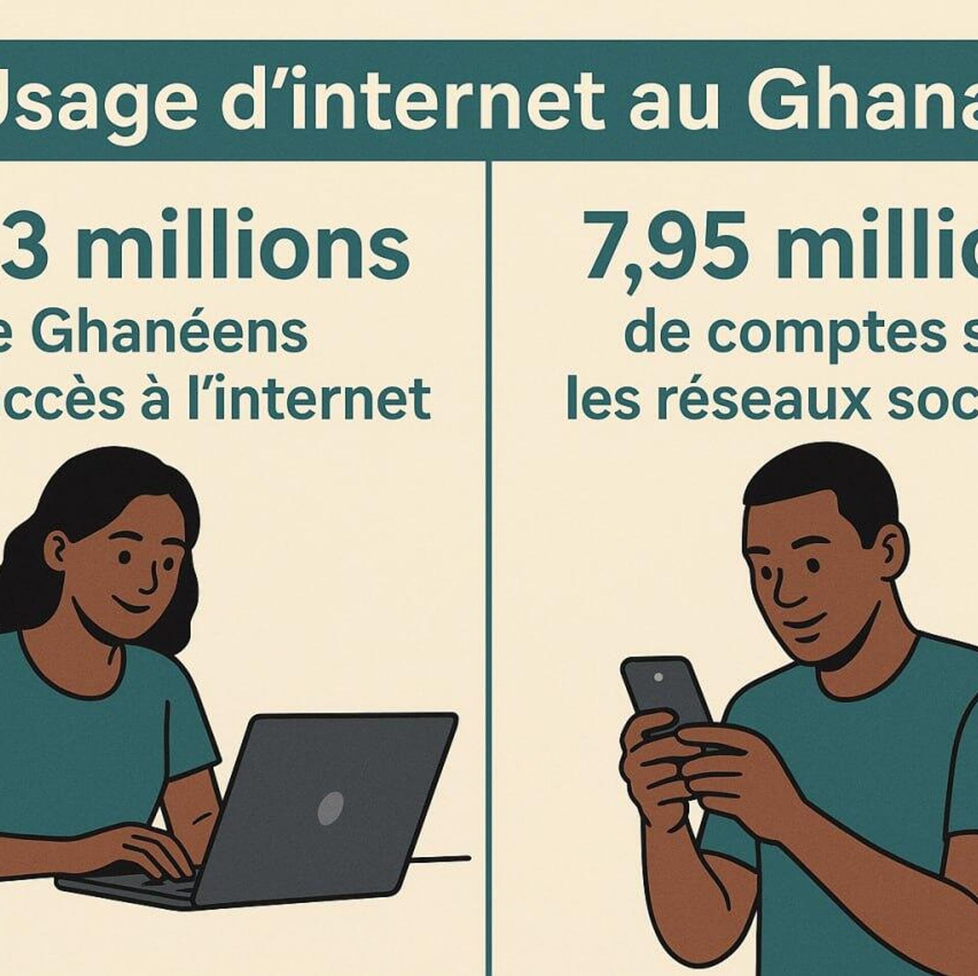 Selon lui, le Ghana recense également 7,95 millions de comptes actifs sur les réseaux sociaux, soit 22,9% de la population, ce qui lui vaut le 15e rang mondial.