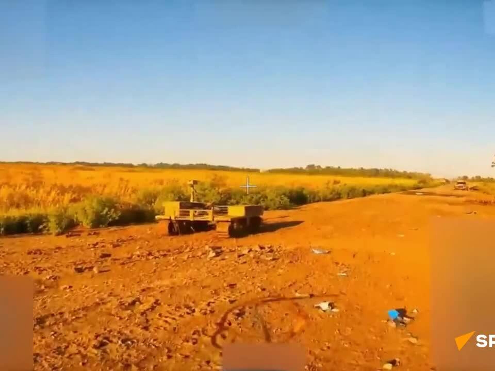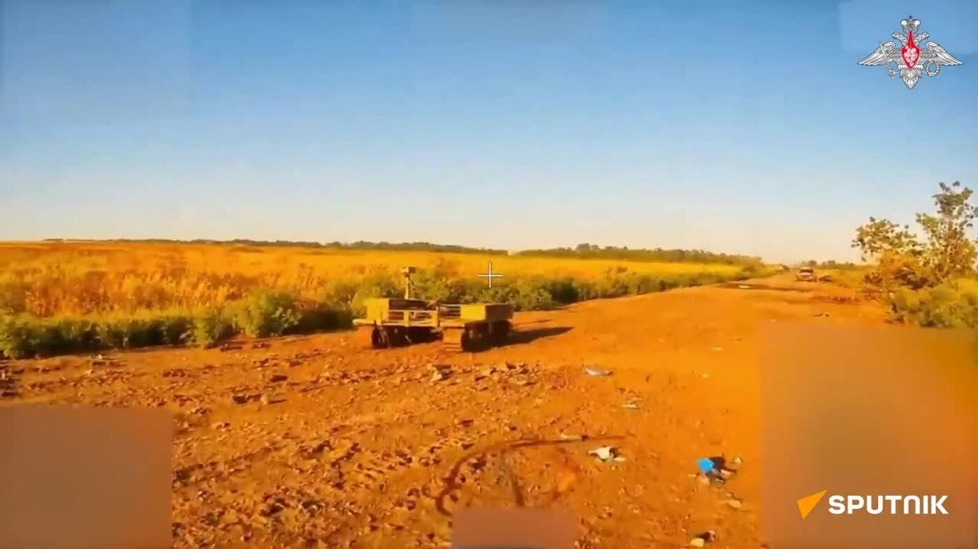 00:00 Un drone FPV du groupement Centre atteint une plateforme sans pilote qui livrait des munitions aux troupes ennemies près de Krasnoarmeïsk.