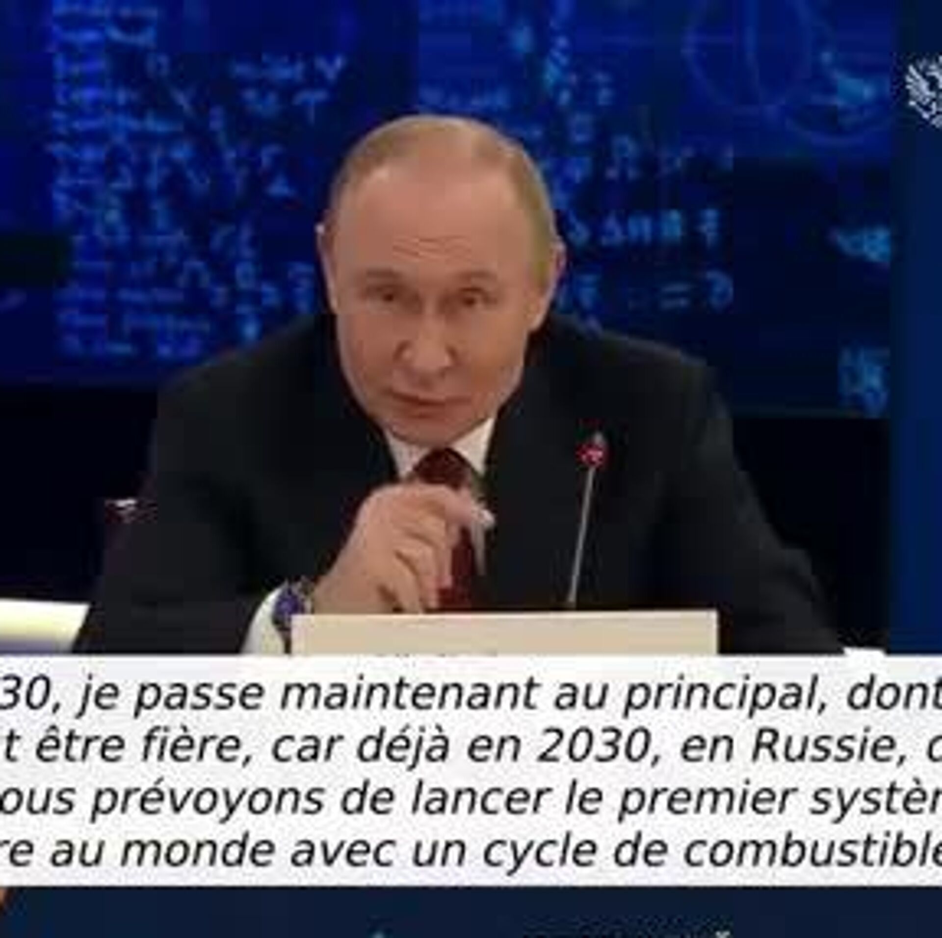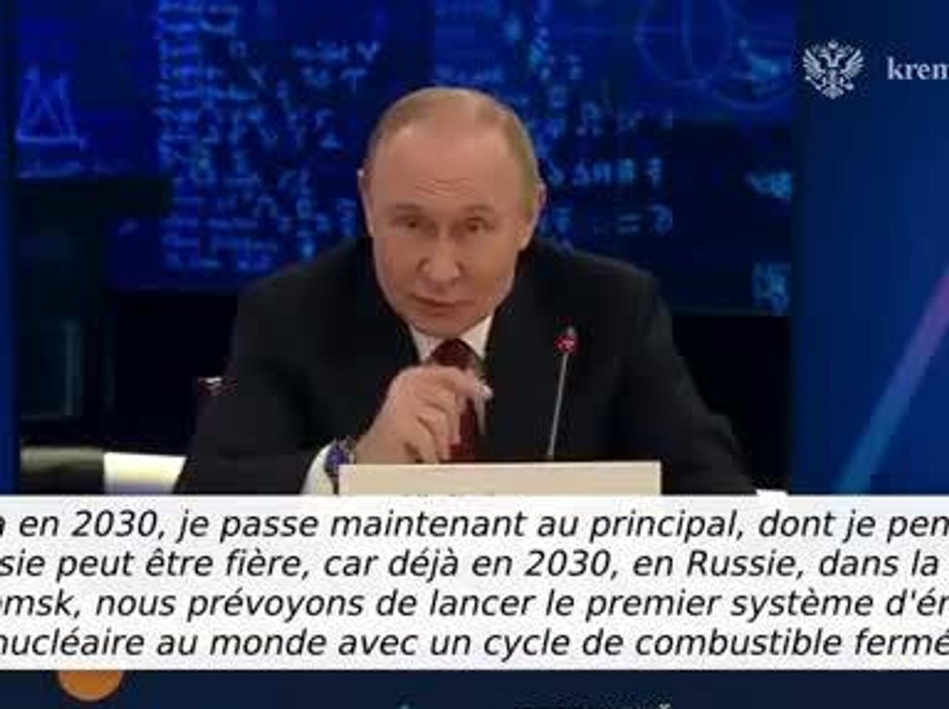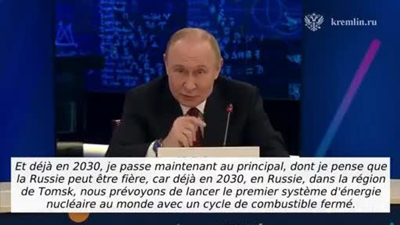 Ce sera le premier système d'énergie nucléaire au monde à cycle de combustible fermé prévu pour être lancé d’ici à 2030, a déclaré le Président lors de la Semaine mondiale du nucléaire à Moscou.