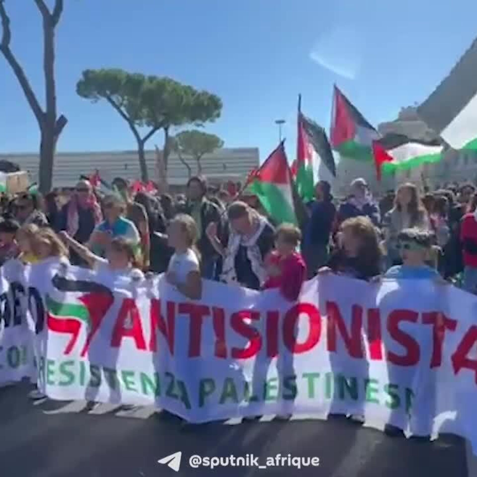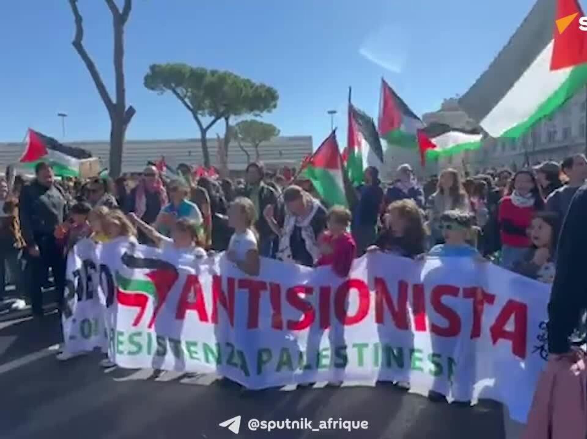 Cette mobilisation s'inscrit dans le contexte d'une grève générale des syndicats italiens, en protestation contre la politique du gouvernement quant à la crise à Gaza, rapporte un correspondant de Sputnik.
