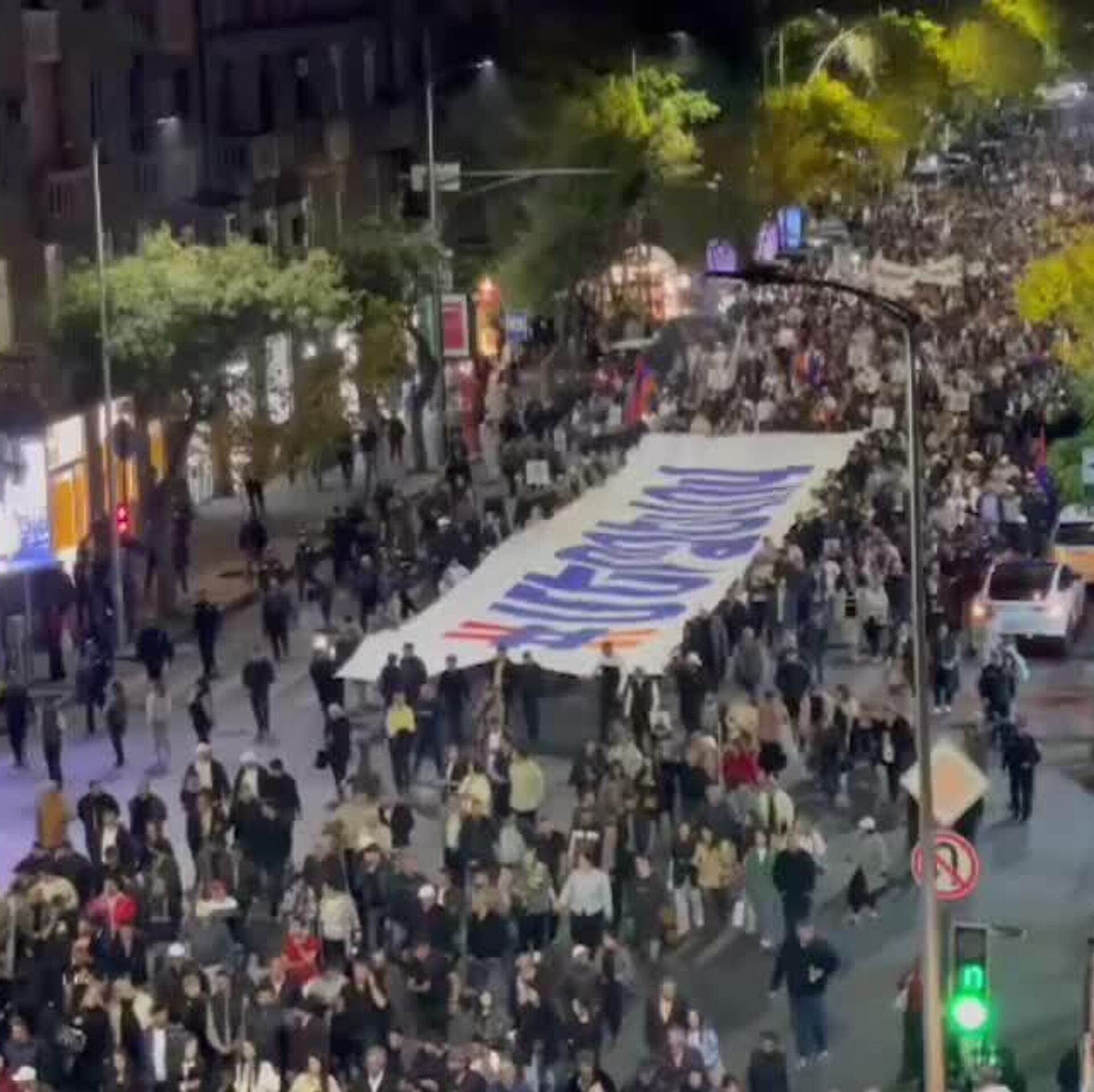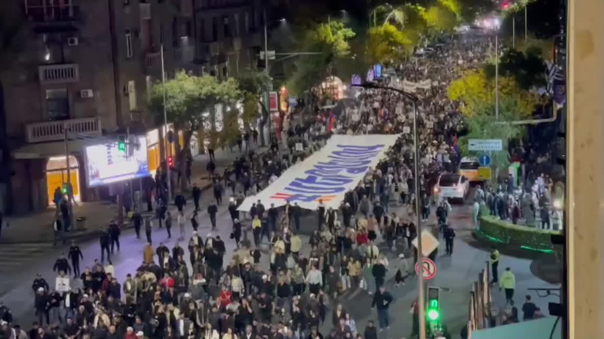 ▪ "Ceux qui ne se résignent pas à la situation actuelle se sont rassemblés ici. Nous exigeons la libération des prisonniers politiques, de nos prêtres, de Samvel Karapetian", a déclaré à l'ouverture Aleksan Aleksanian, responsable du mouvement À notre manière dirigé par Karapetian, selon un correspondant de Sputnik.