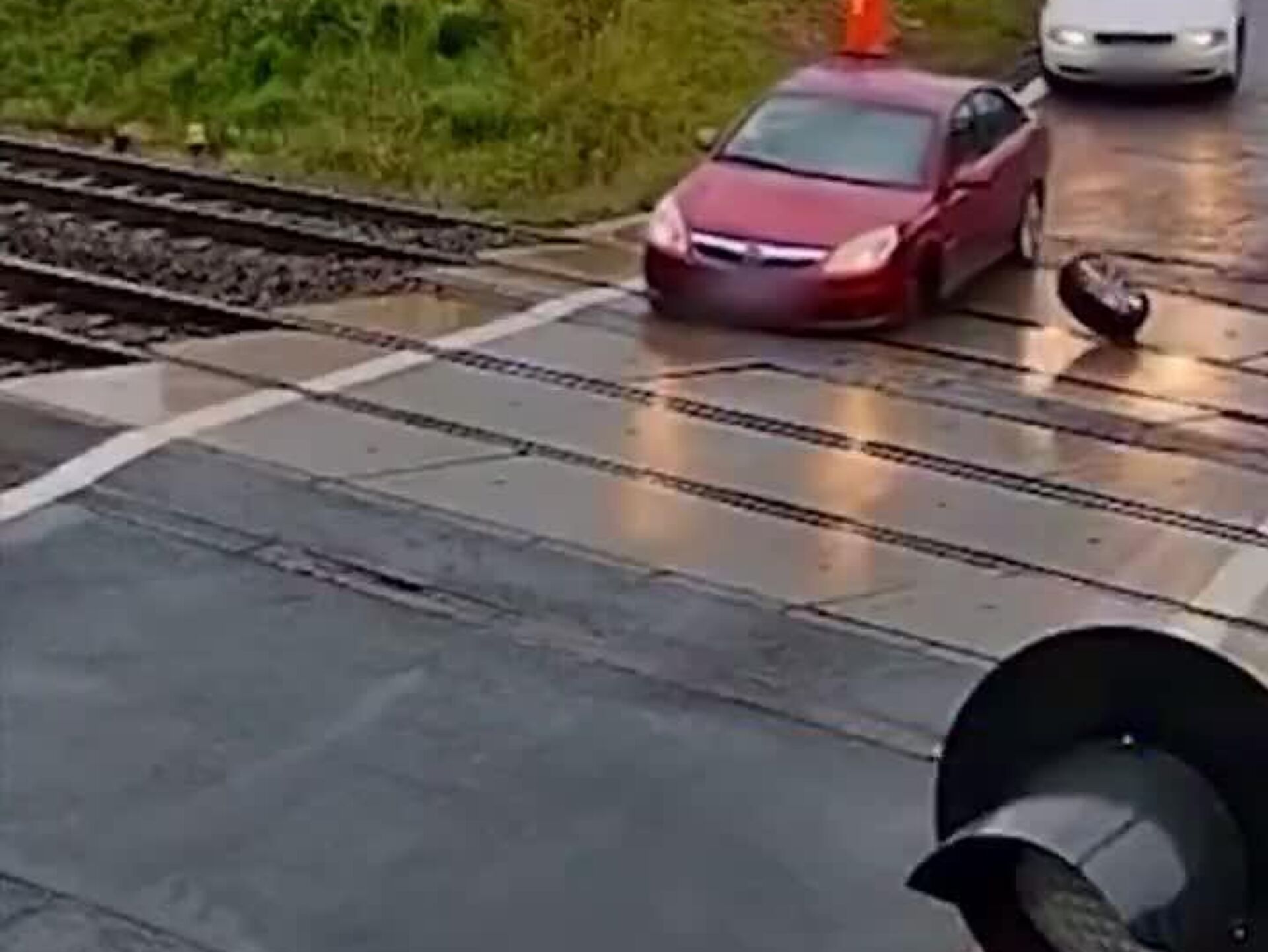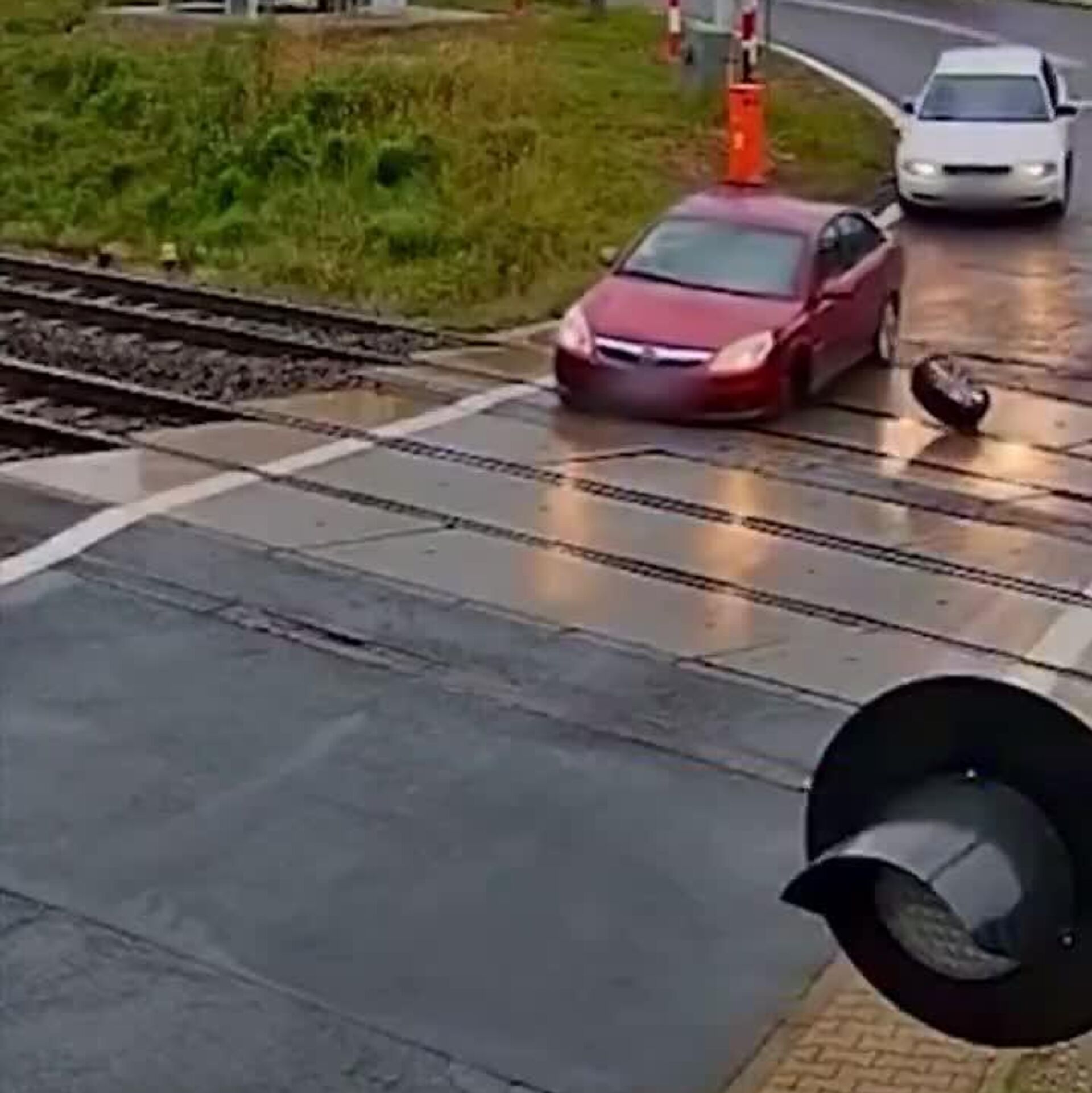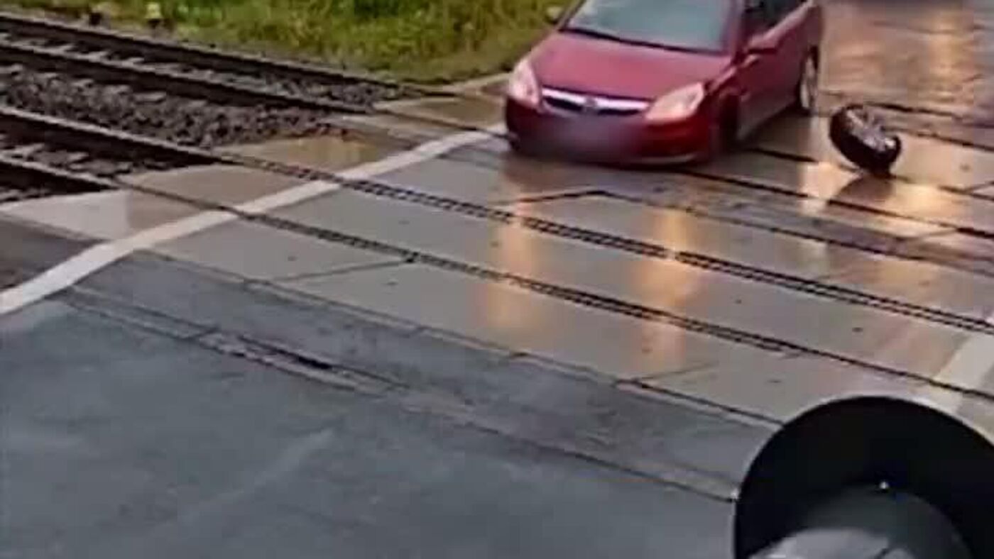 ▶ Pire cauchemar de tout automobiliste: un pneu s'est détaché d'une voiture à un passage à niveau en Pologne