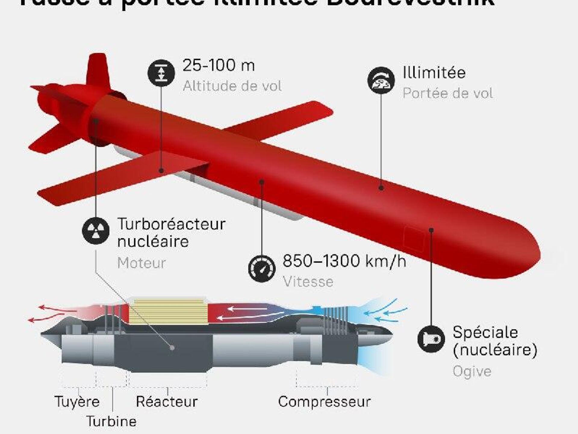 1⃣ Il s'agit de la première utilisation réussie au monde d'un système de propulsion nucléaire dans un missile de croisière conçu pour le combat.